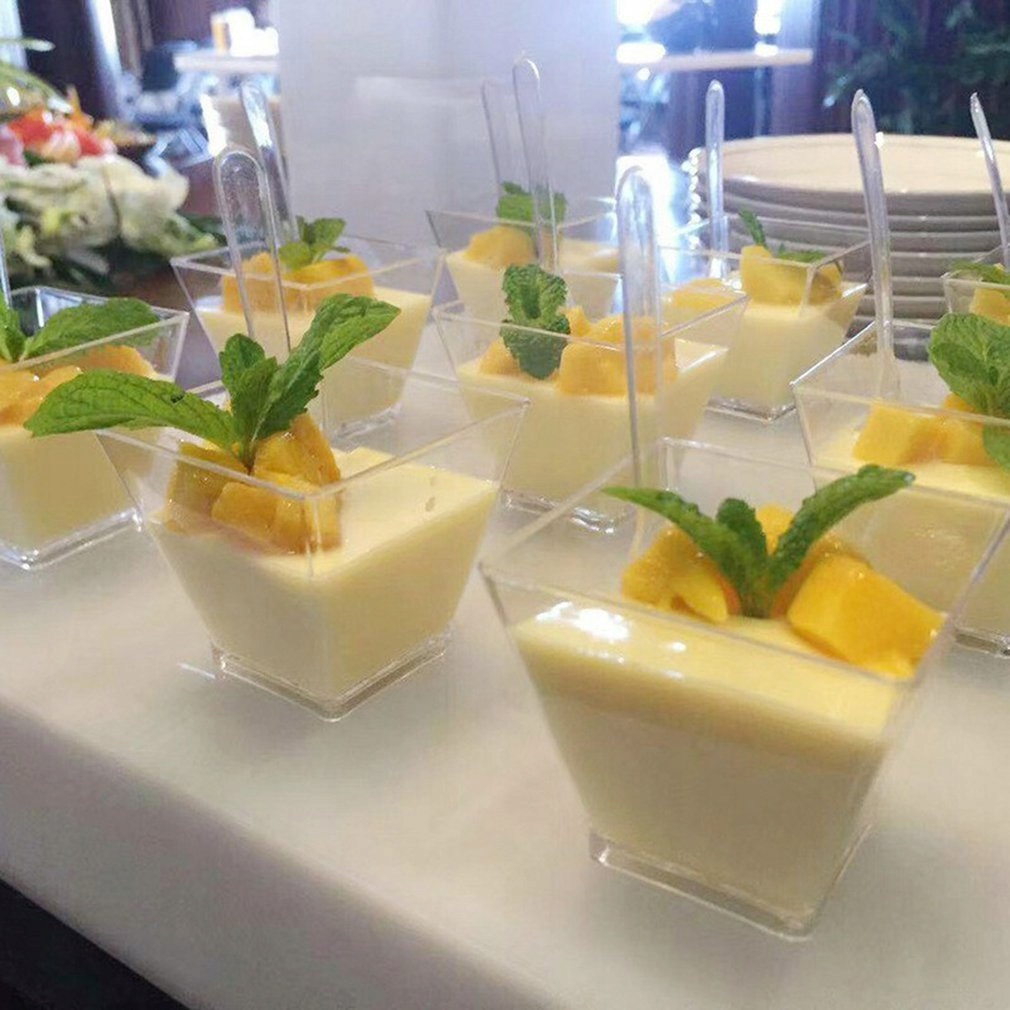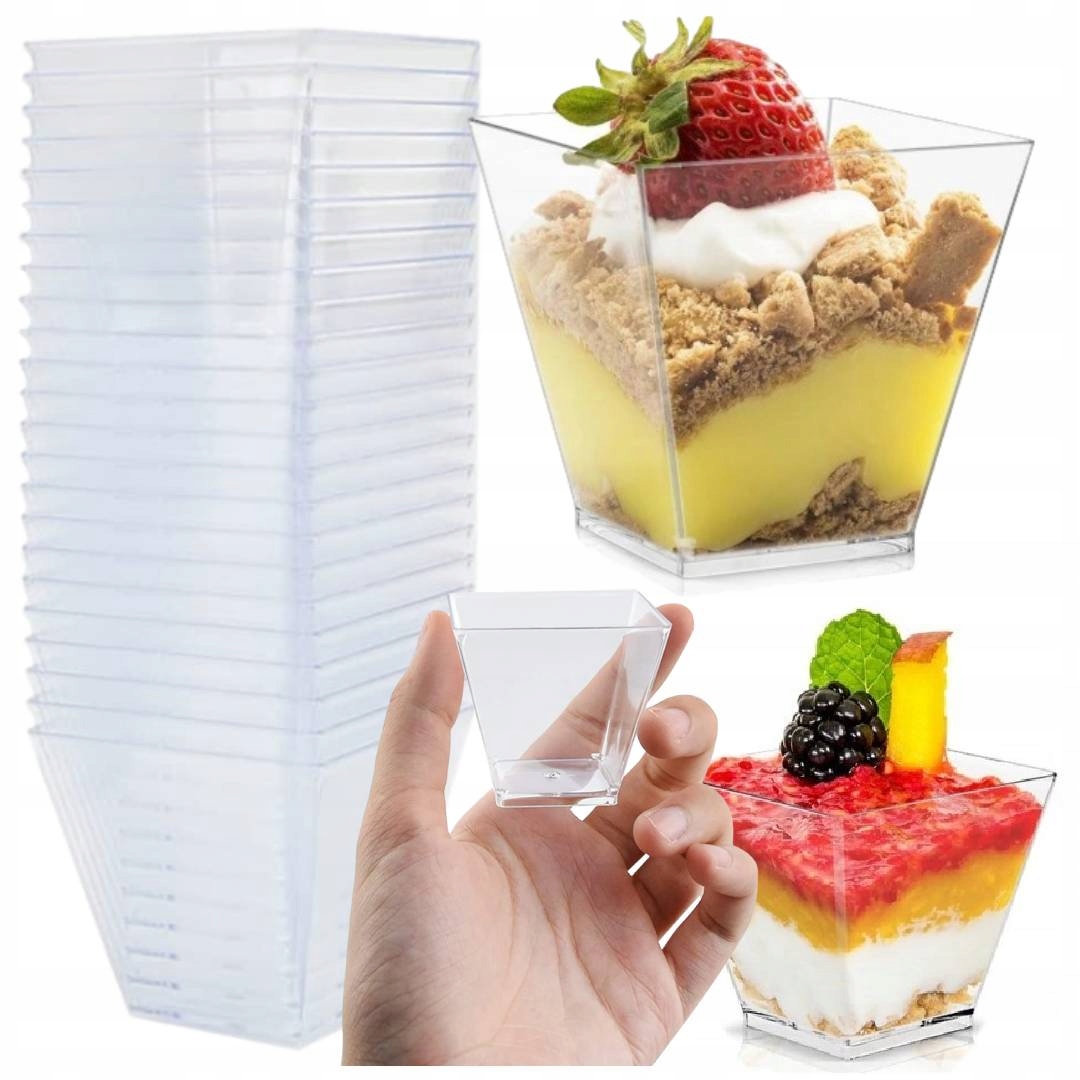 Komplet 50 przezroczystych pucharków doskonale sprawdzi się na uroczystościach, przyjęciach, weselach czy imprezach okolicznościowych. Nadają się do serwowania przekąsek, deserów, lodów i innych smakołyków.