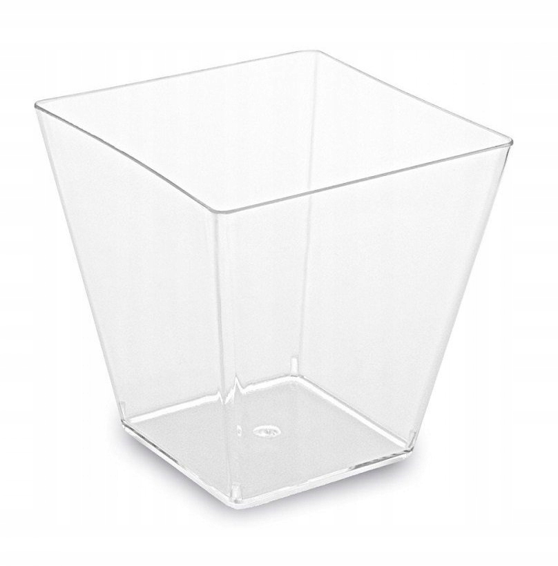 Pucharki wykonane są z wytrzymałego, przezroczystego tworzywa sztucznego, które imitują szkło, dodając elegancji każdemu przyjęciu.