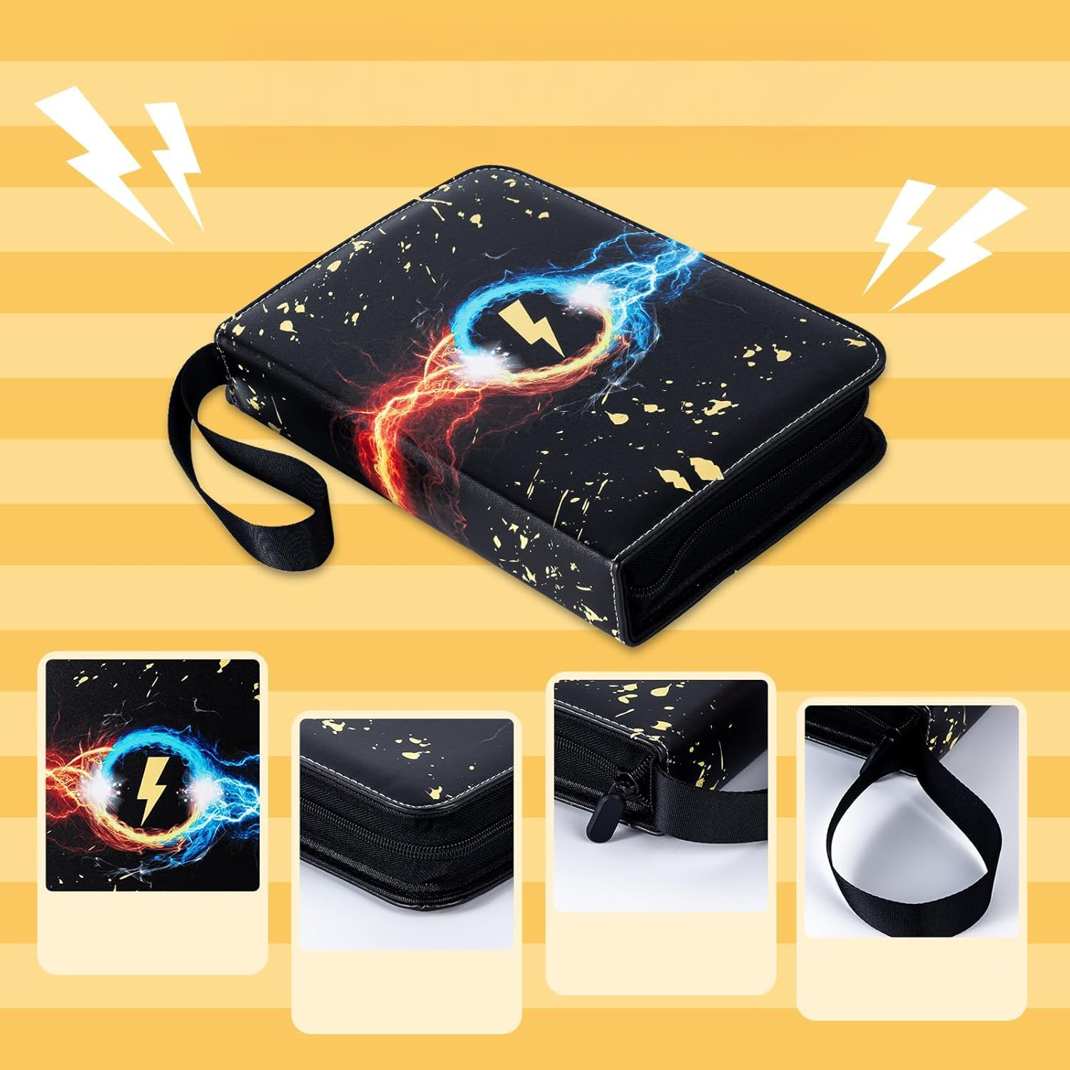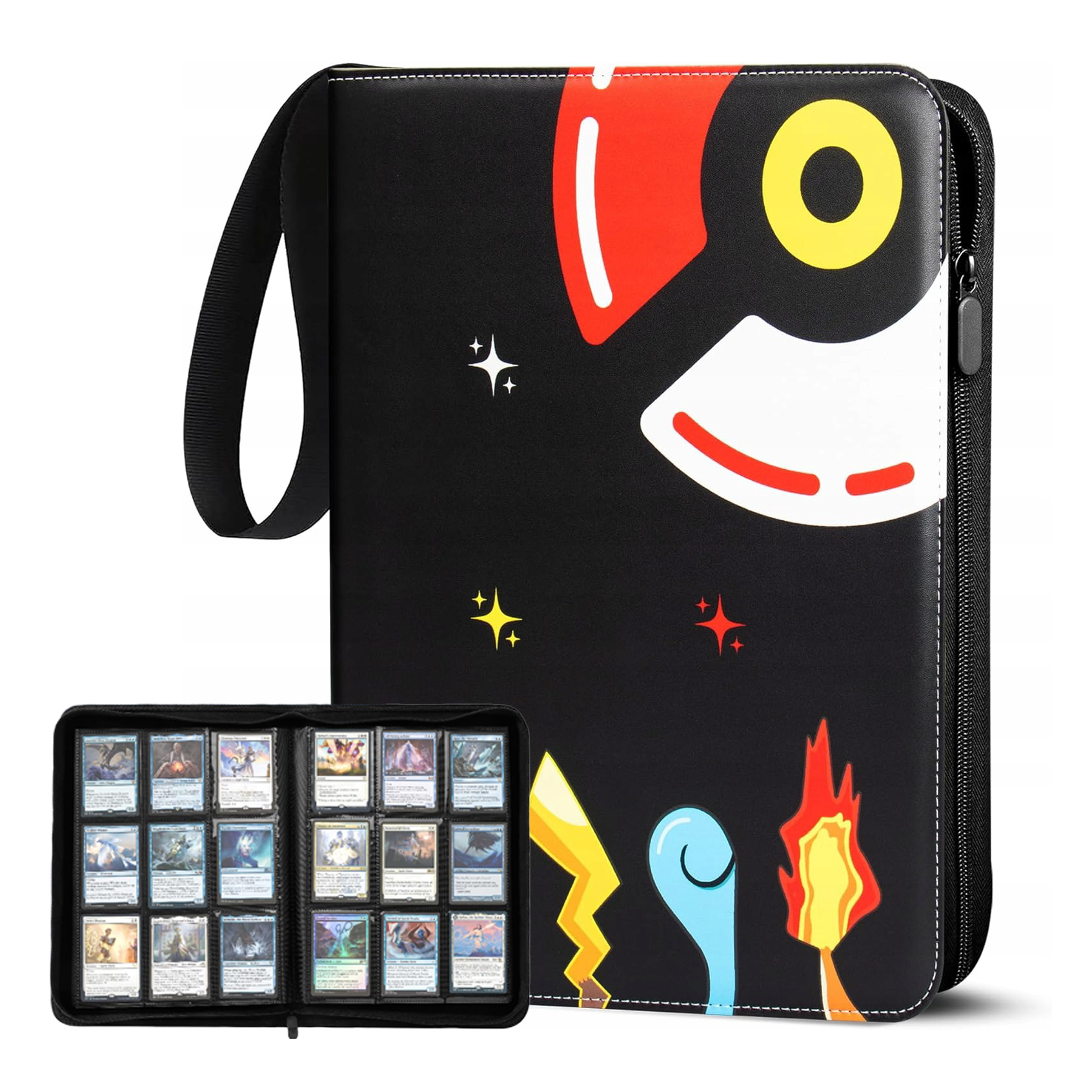 Album XL na karty kolekcjonerskie 900 szt organizer duży Pokémon, One Piece, Lorcana, Yu-Gi-Oh! – 900 kart | 50 stron | Wodoodporny | Zamek błyskawiczny | Uchwyt na rękę