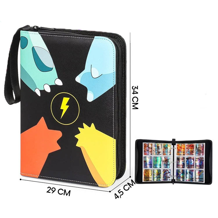 Album mieści aż 900 kart dzięki 50 stronom przezroczystych koszulek. Standardowy rozmiar kieszeni sprawia, że jest kompatybilny z wszystkimi klasycznymi kartami kolekcjonerskimi (Pokémon, One Piece, Lorcana, Yu-Gi-Oh!, MTG, itp.).