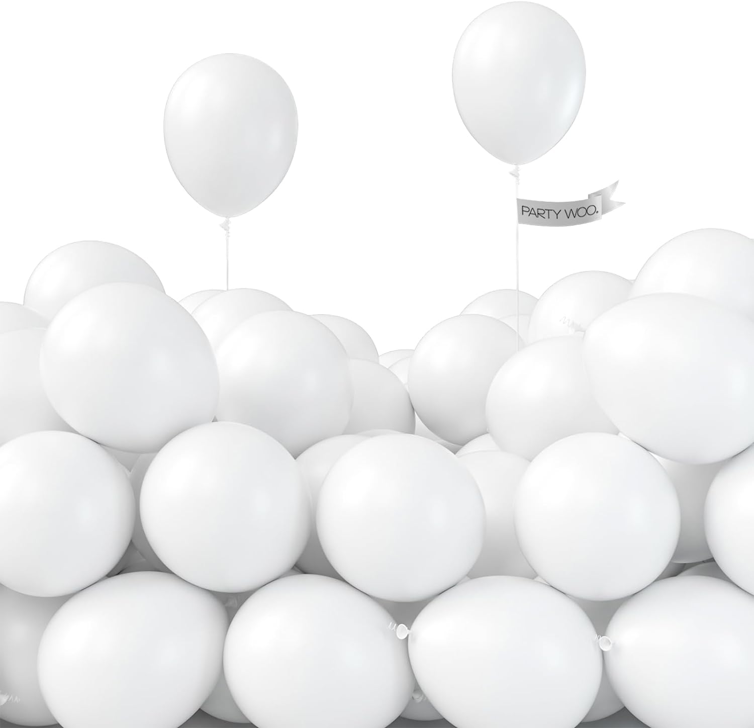PartyWoo – 120 szt. 5-calowych Białych Matowych Balonów, 100% Lateks, Uniwersalne Dekoracje na Ślub, Baby Shower, Urodziny, Neutralne Tematyczne Wydarzenia