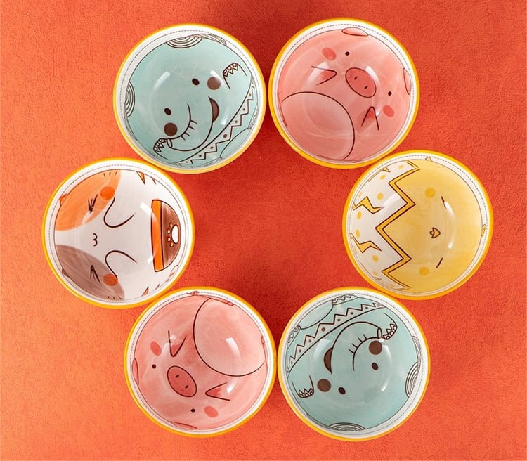 Styl Bohemia: Klasyczna, biała tekstura w paski na zewnątrz zapewnia antypoślizgowy chwyt, a wewnętrzny wzór w zwierzęta tworzy piękny zestaw misek, który doskonale prezentuje jedzenie i ozdabia stół.