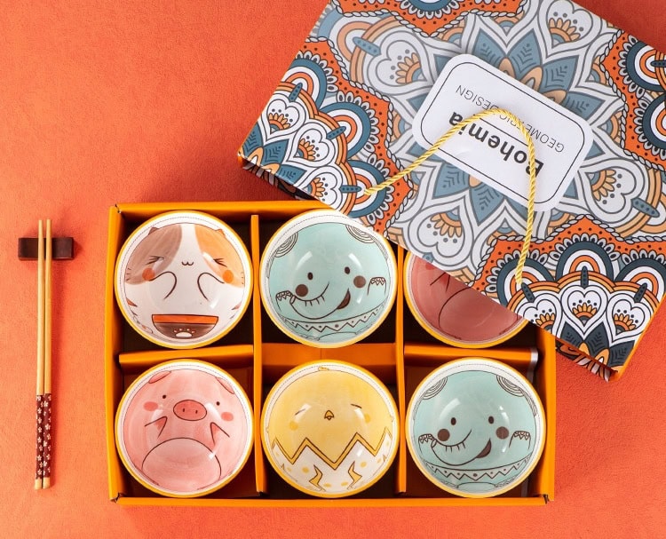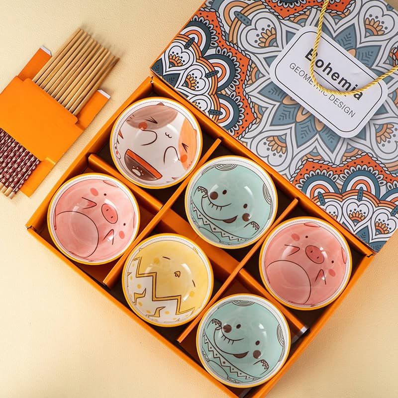 Bohemia zestaw 6 misek ceramicznych na ryż zupę płatki 300 ml + Pałeczki