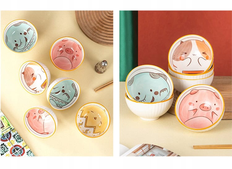 Pojemność: Każda miska ma pojemność 300 ml, co sprawia, że idealnie nadają się do serwowania zup, ryżu, sałatek czy innych potraw.