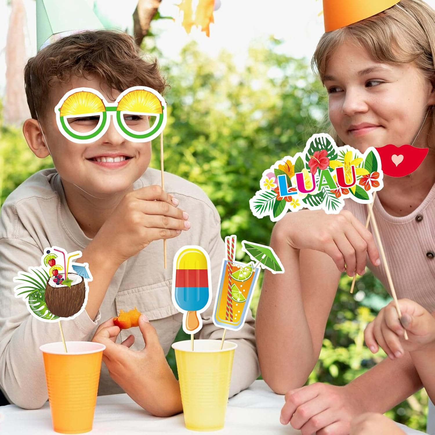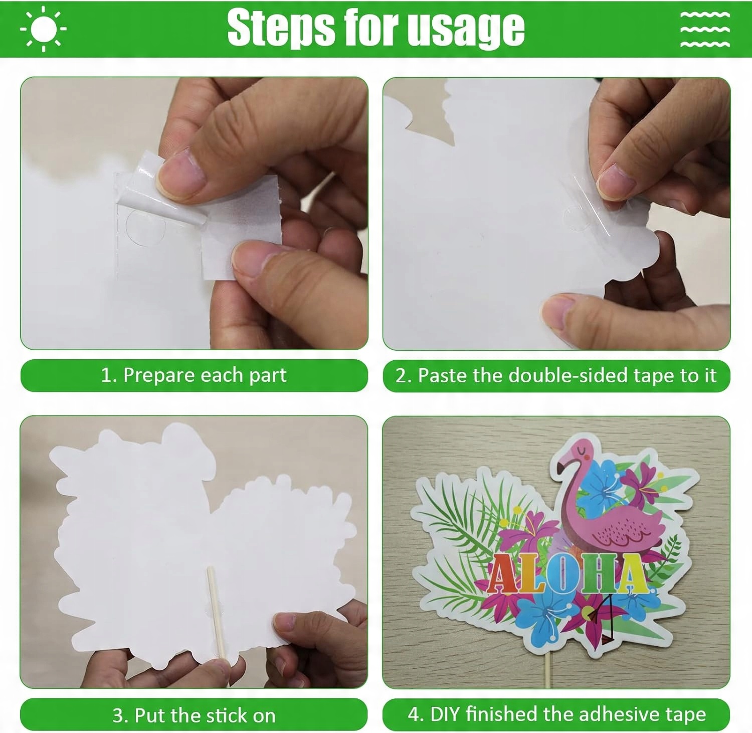 - ✨ Łatwe DIY: Wybierz dowolny rekwizyt z zestawu, a następnie przyklej lub przymocuj go do drewnianego patyczka za pomocą kleju lub taśmy.