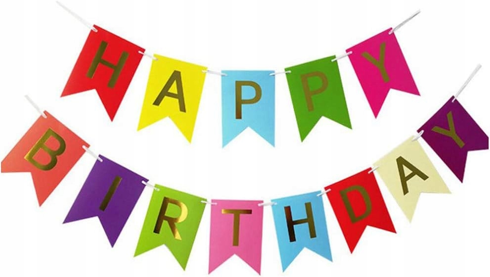 KOLOROWA GIRLANDA ZE ZŁOTYM NAPISEM HAPPY BIRTHDAY