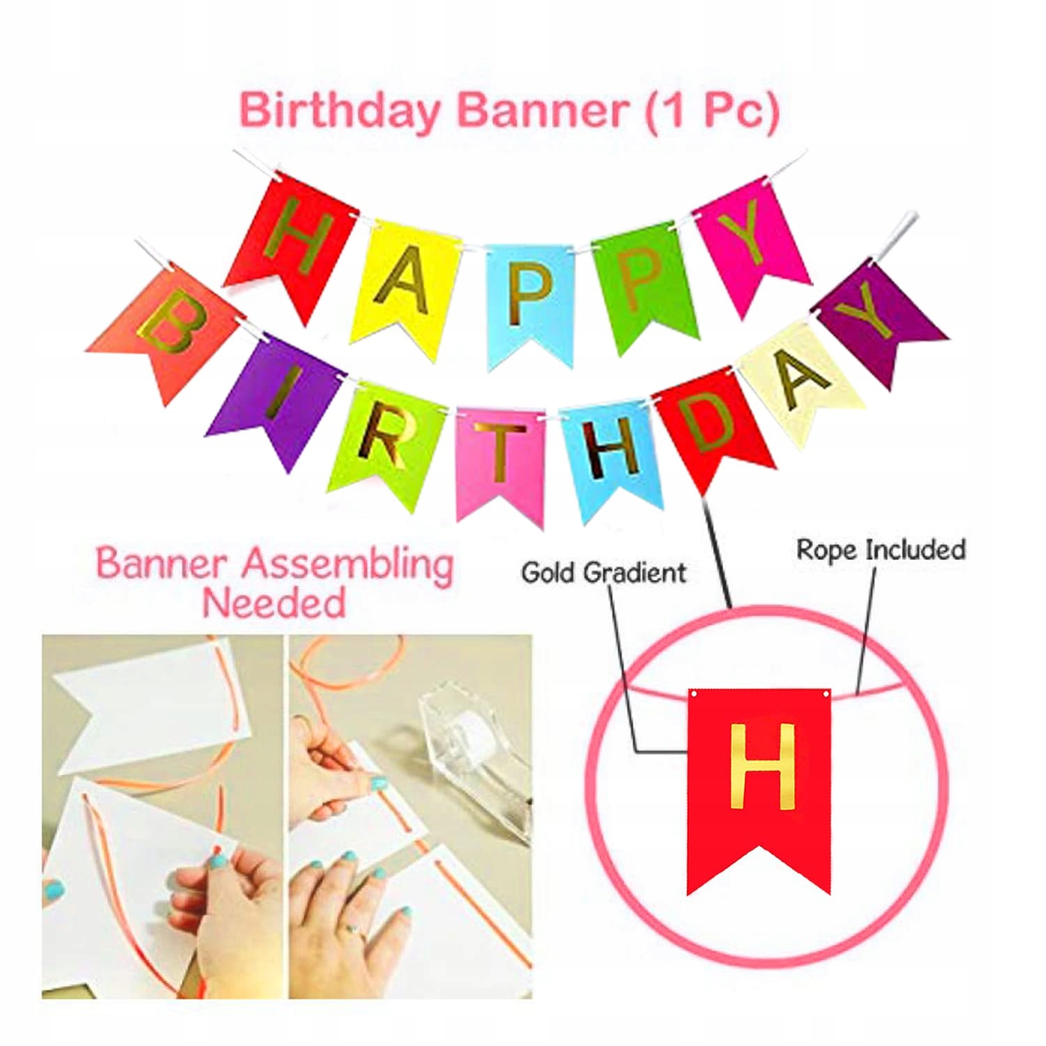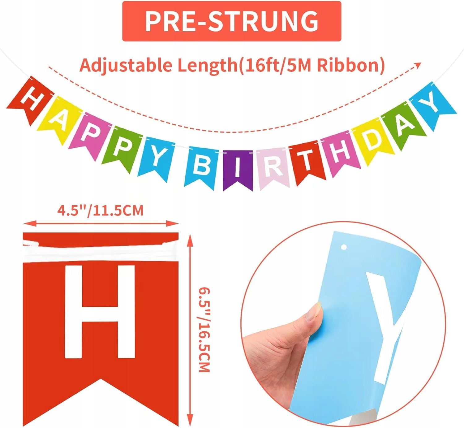 • Zestaw zawiera: girlanda z napisem Happy Birthday.