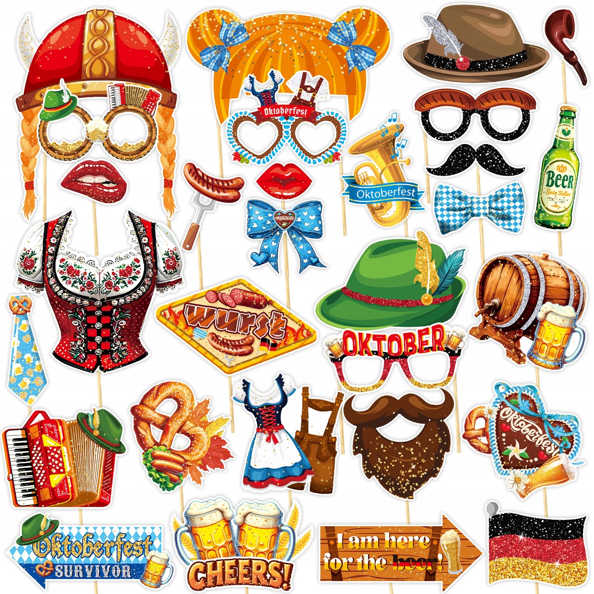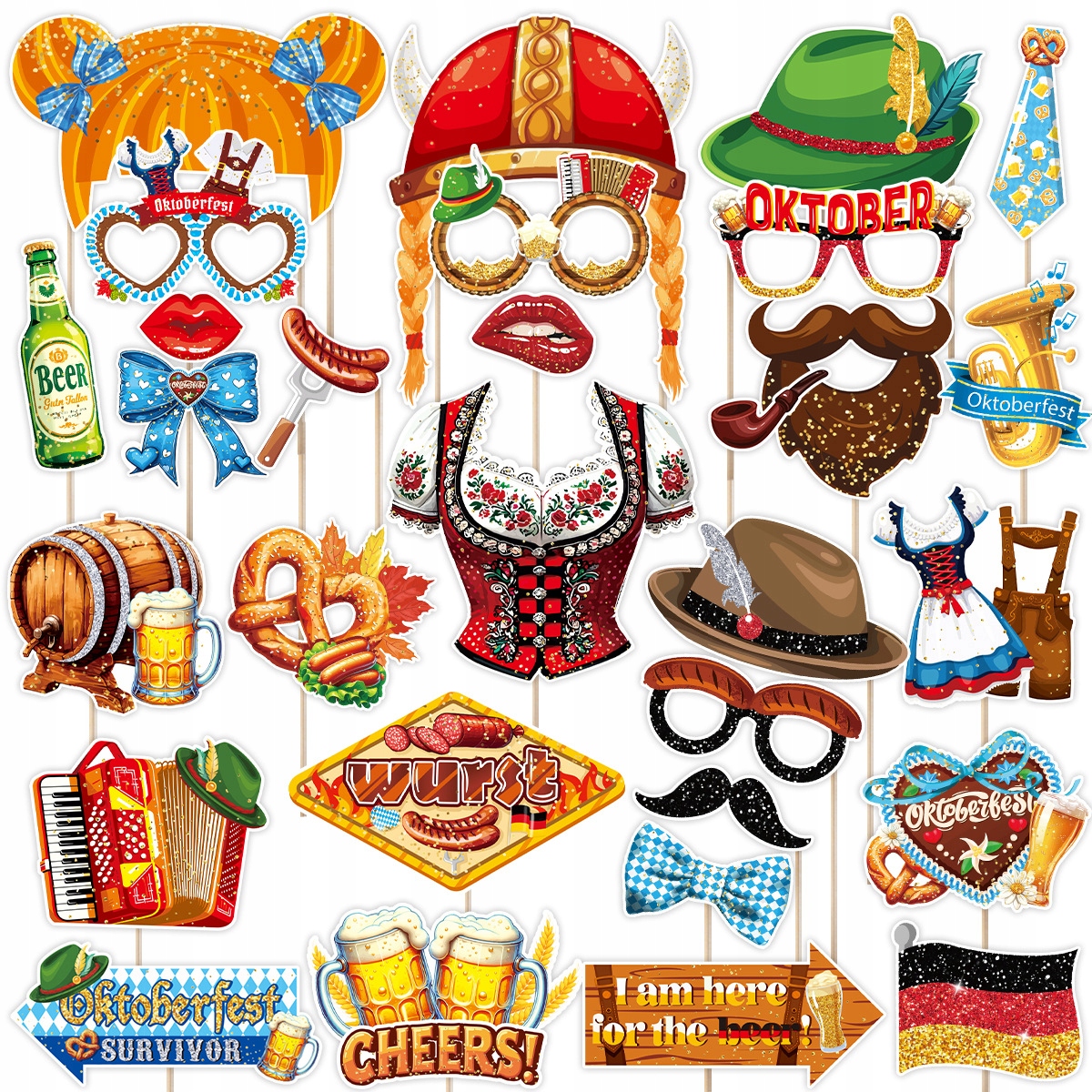 GADŻETY REKWIZYTY DO ZDJĘĆ SELFIE FOTOBUDKA URODZINY PARTY IMPREZY ZESTAW 30 SZTUK – Oktoberfest