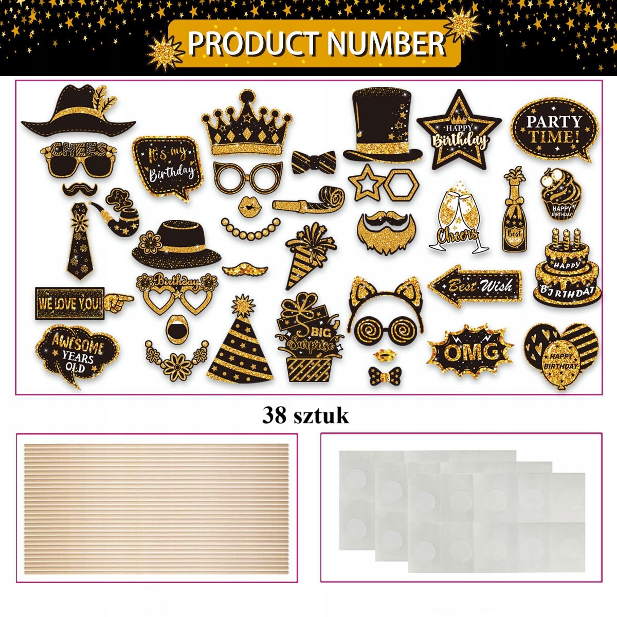 GADŻETY REKWIZYTY DO ZDJĘĆ SELFIE FOTOBUDKA URODZINY PARTY IMPREZA 38 SZTUK