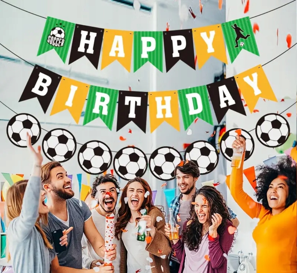 Girlanda Urodzinowa 2x PIŁKA NOŻNA | Happy Birthday