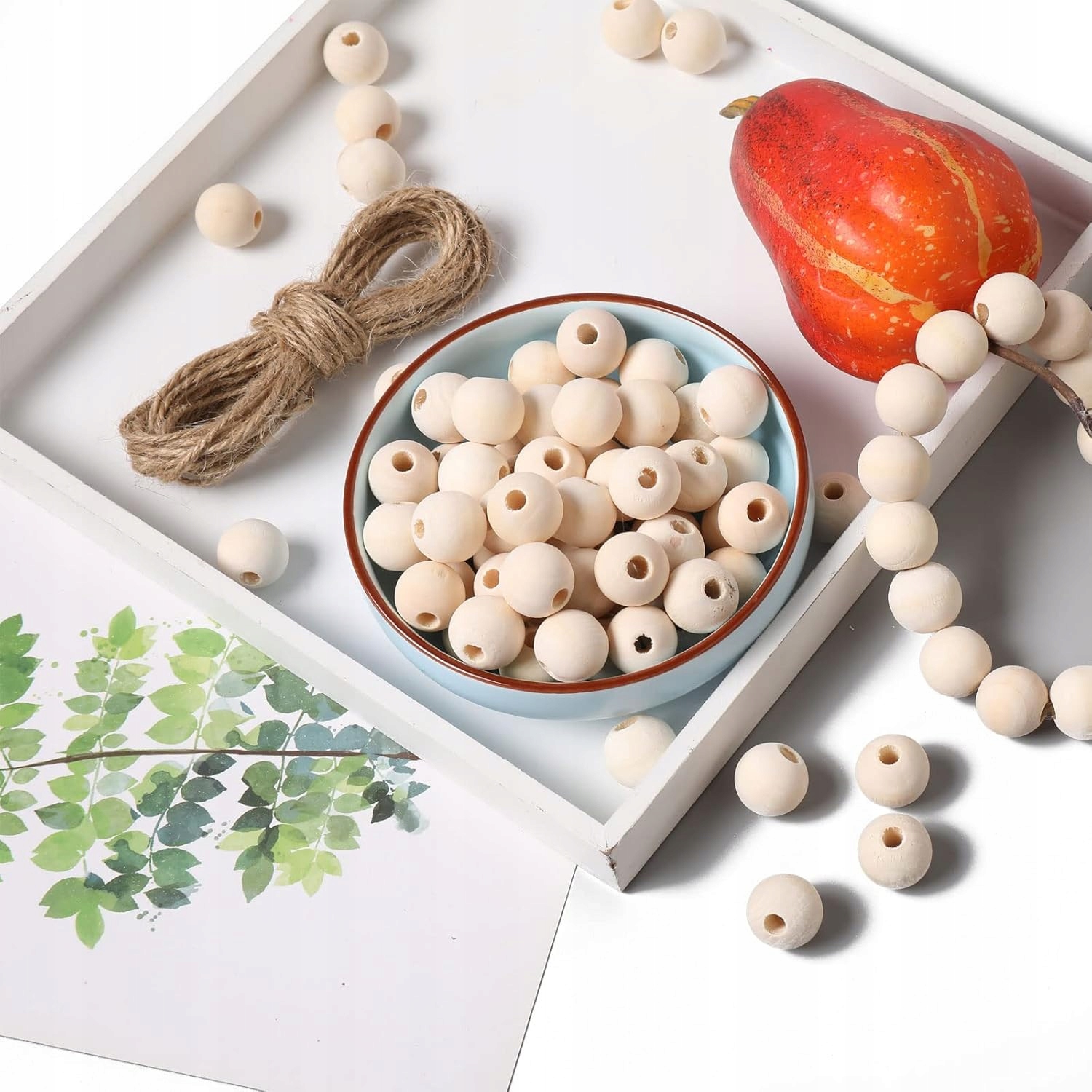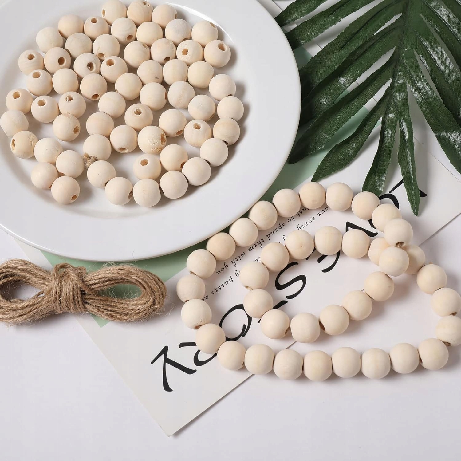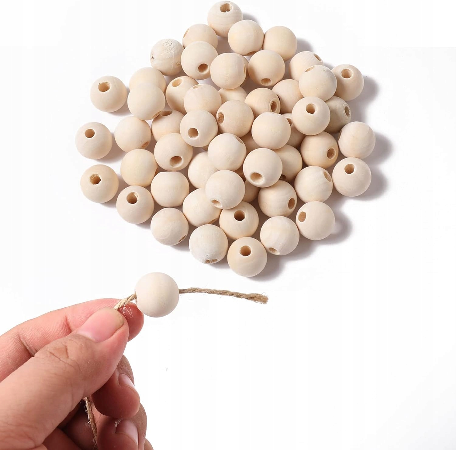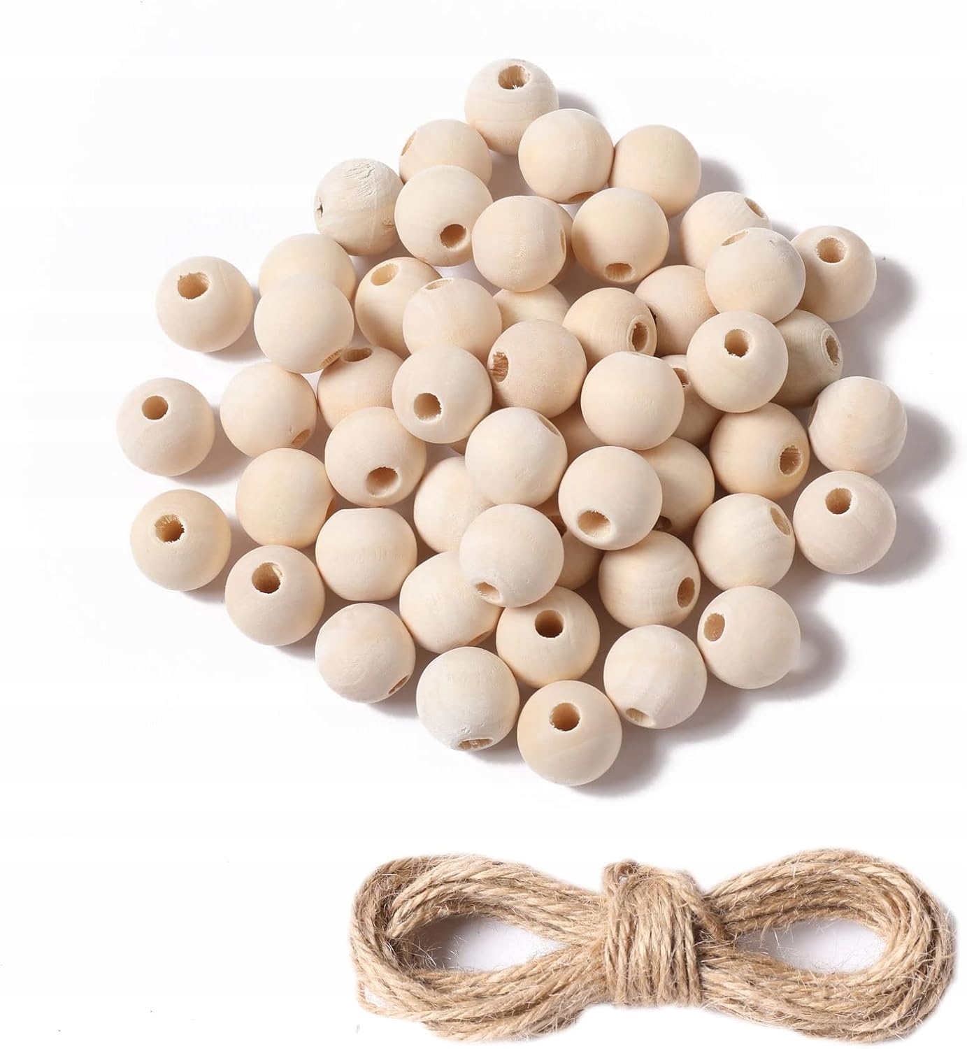 Zestaw 50 Drewnianych Koralików + Sznurek | Naturalne Okrągłe Koraliki do Rękodzieła, DIY i Dekoracji