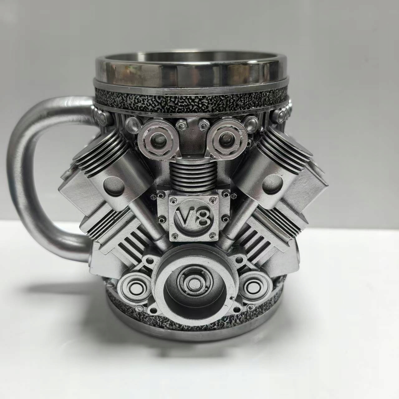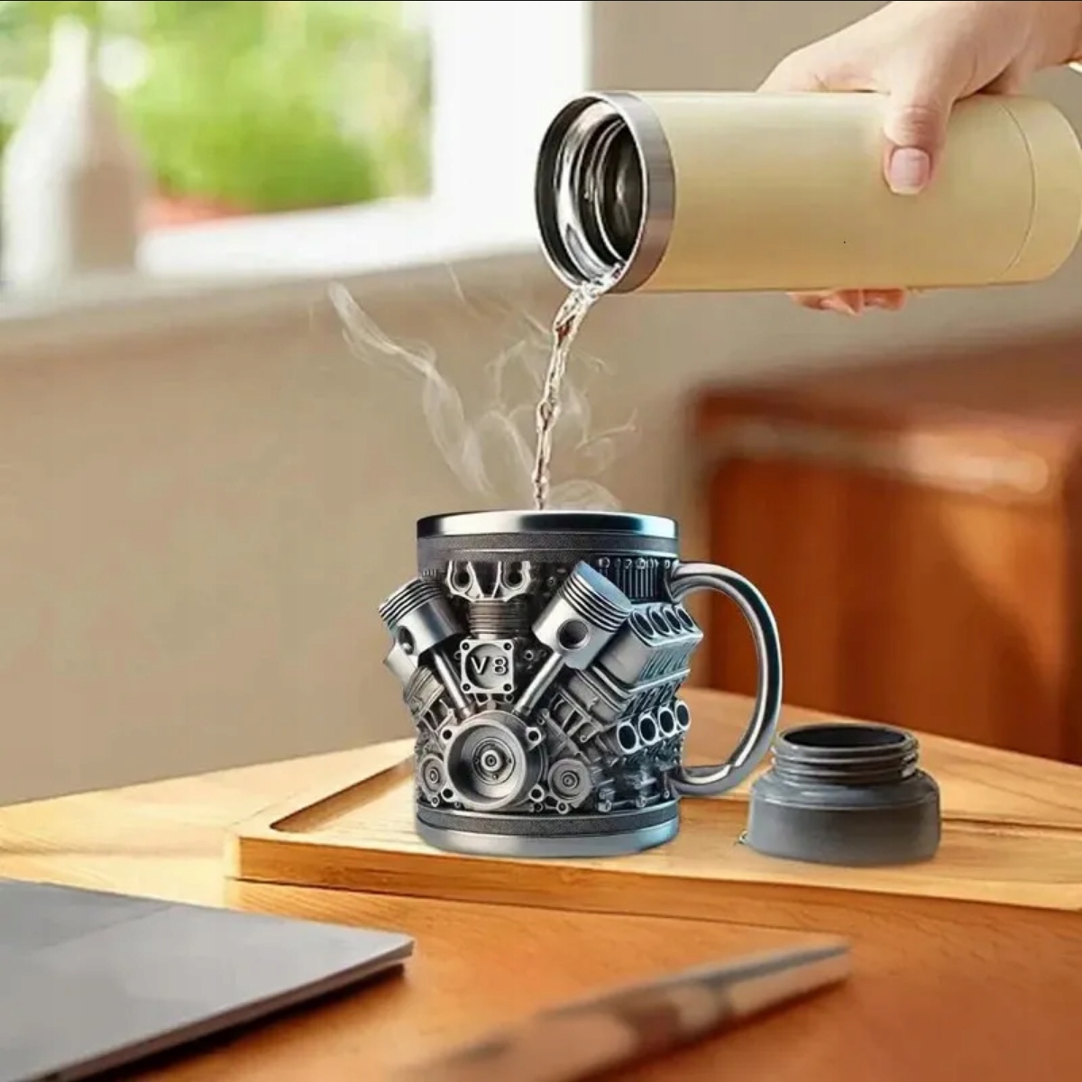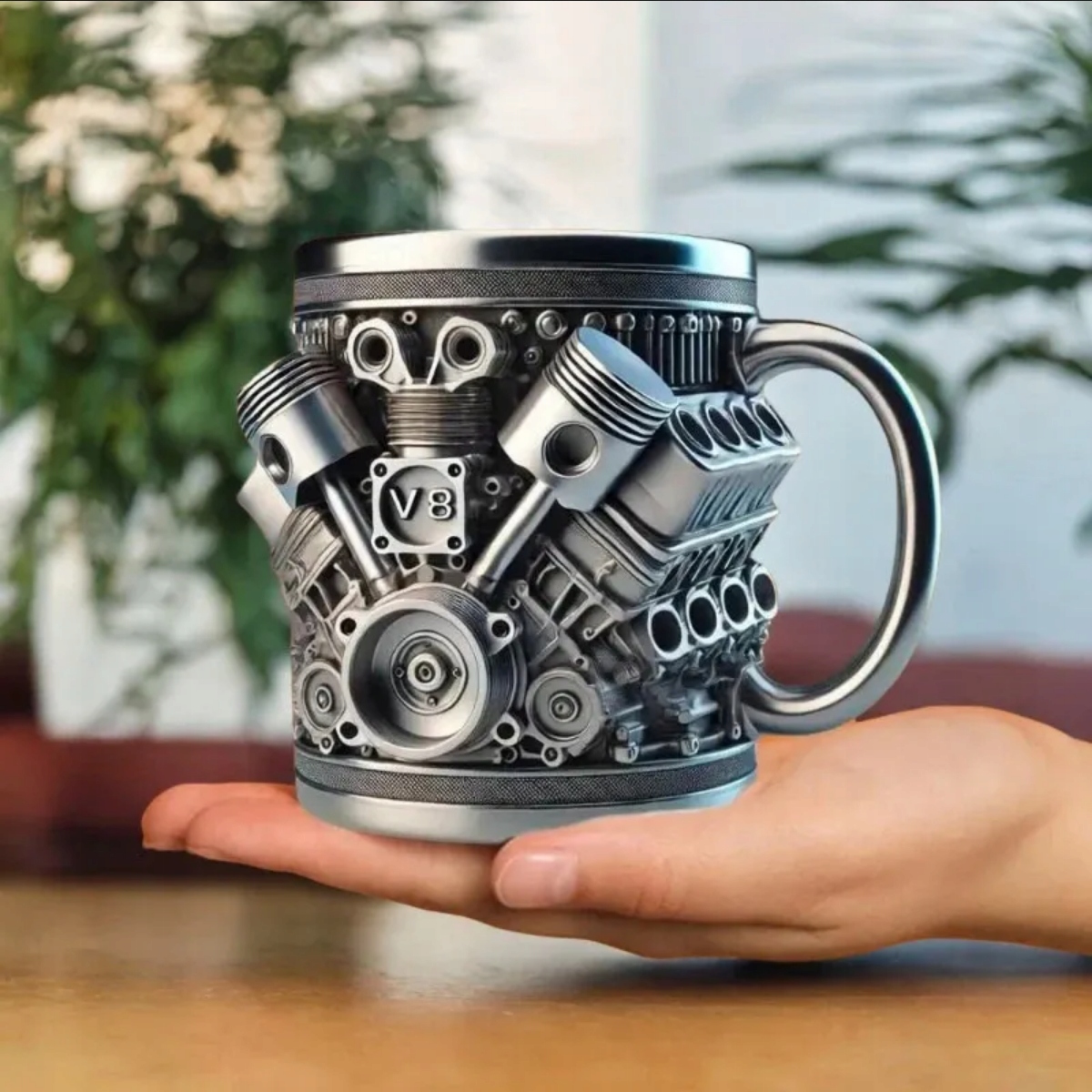 Dzięki podwójnym ściankom kubek utrzymuje temperaturę napoju przez dłuższy czas, a precyzyjne wykonanie detali sprawia, że wygląda jak prawdziwy silnik. Sprawdzi się jako oryginalny prezent dla mężczyzny, kierowcy lub mechanika – efektowny i praktyczny zarazem.