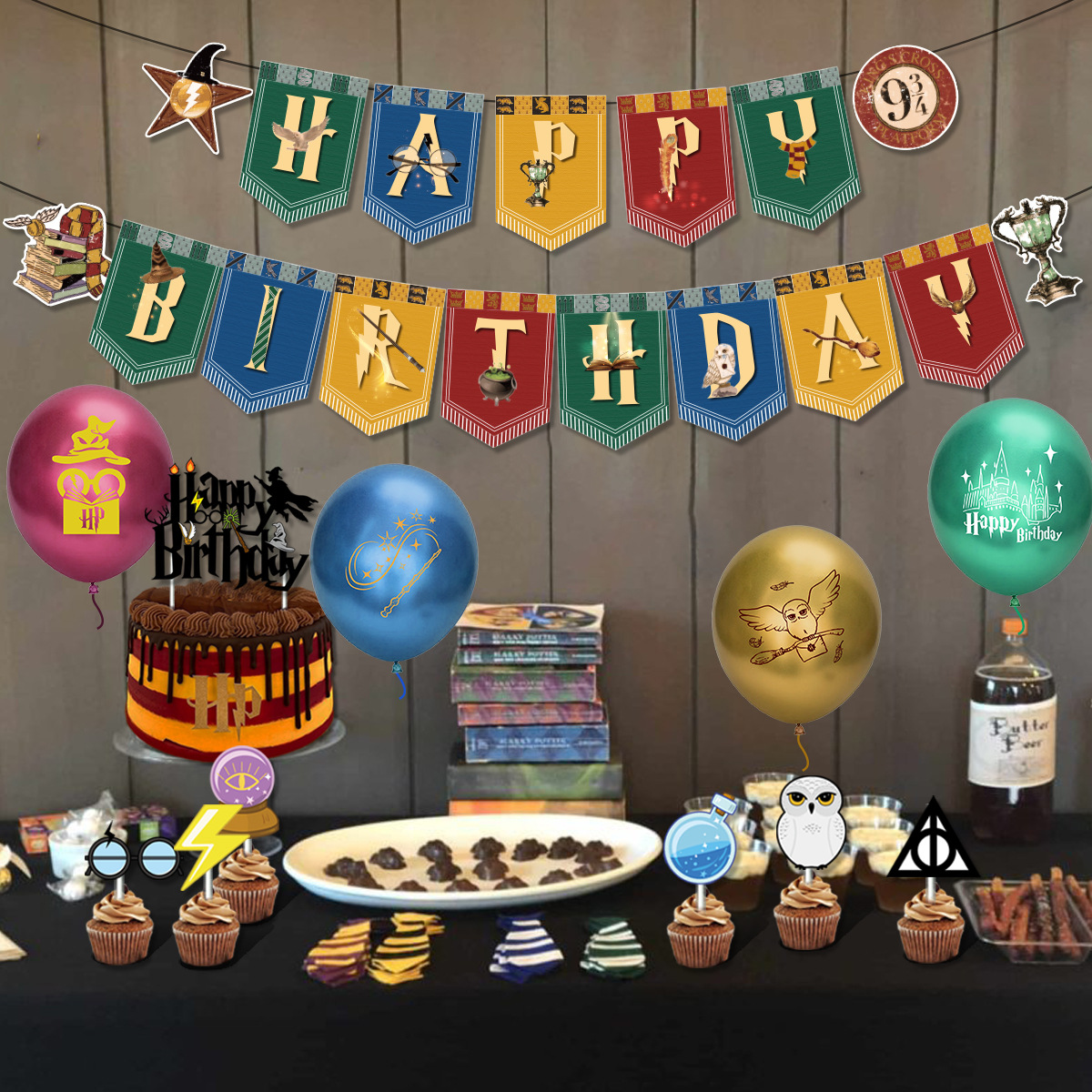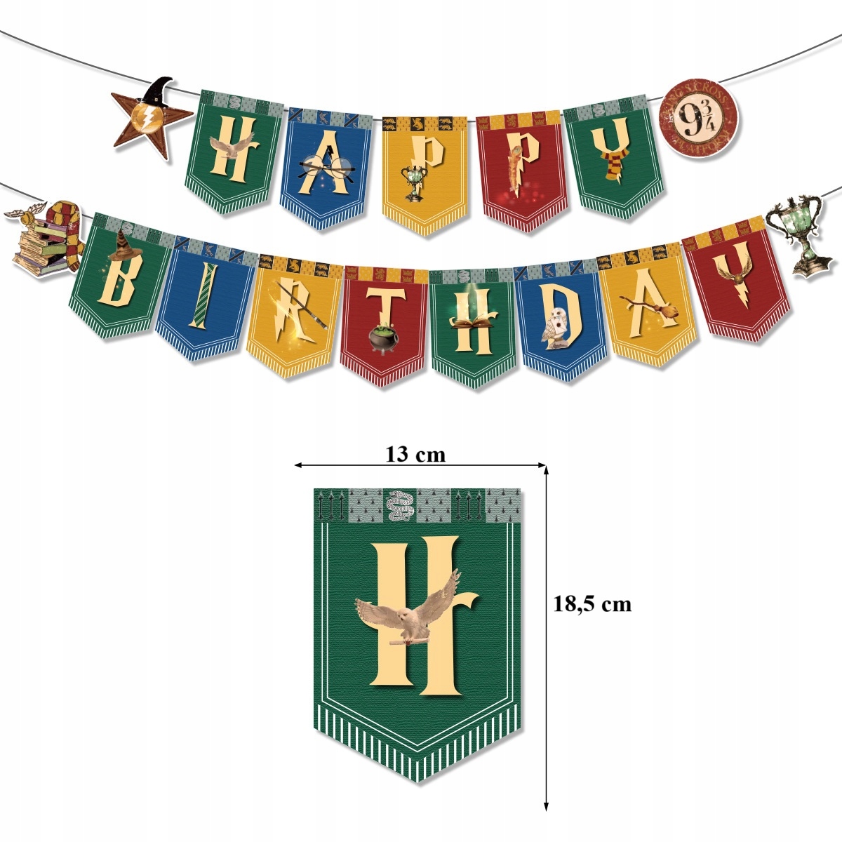 - 1 x girlanda z napisem „Happy Birthday” – stylizowane motywami z Harry’ego Pottera