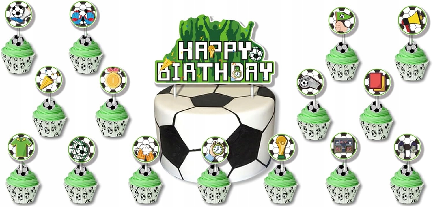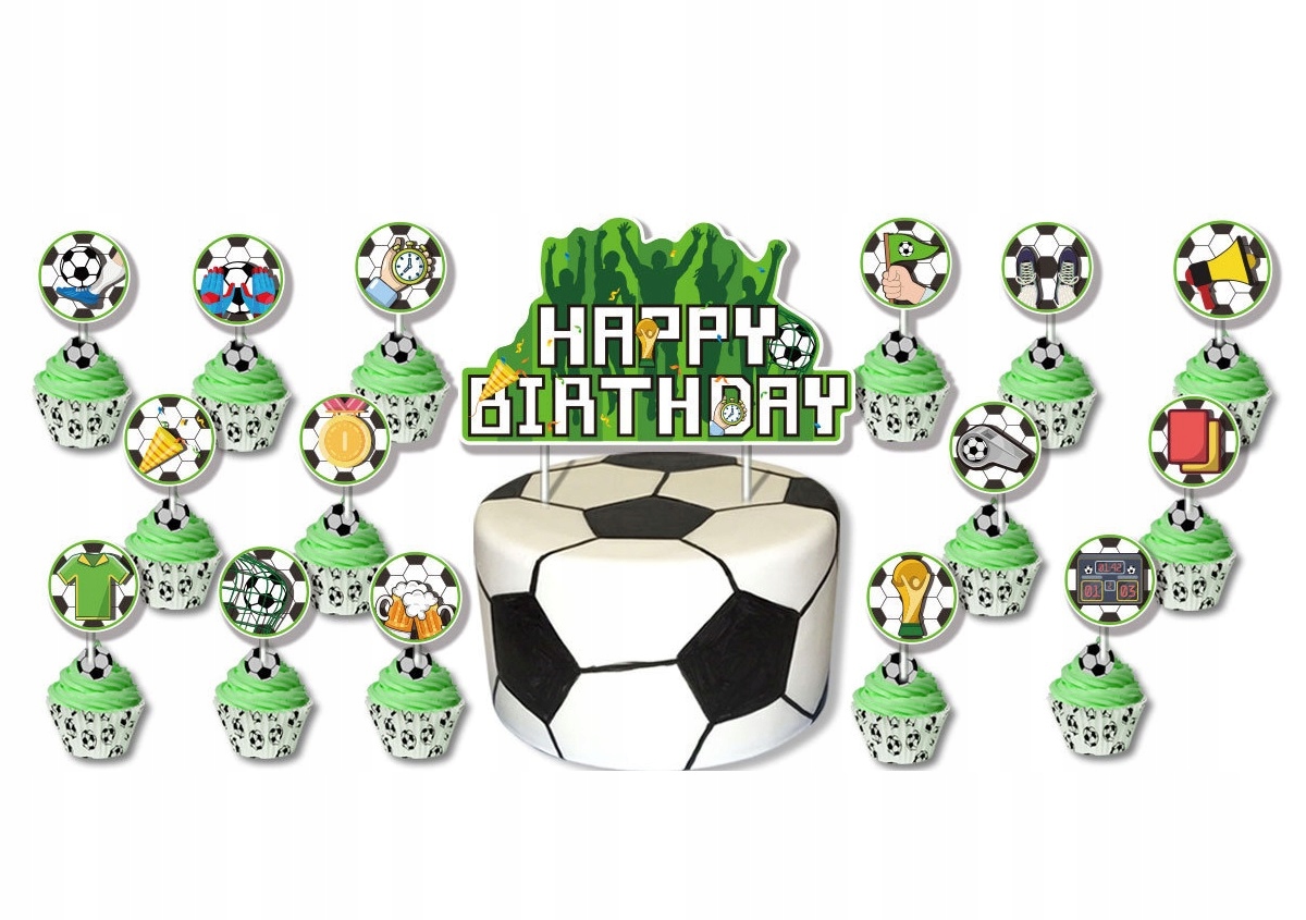 DUŻY TOPPER NA TORT + TOPPERY NA BABECZKI Piłka Nożna