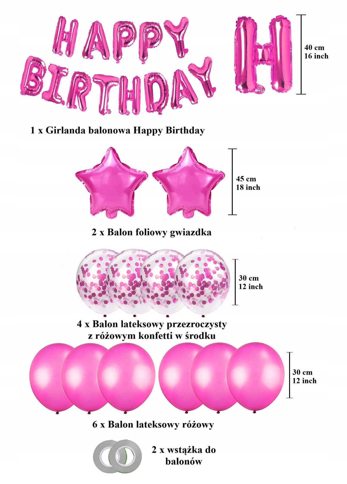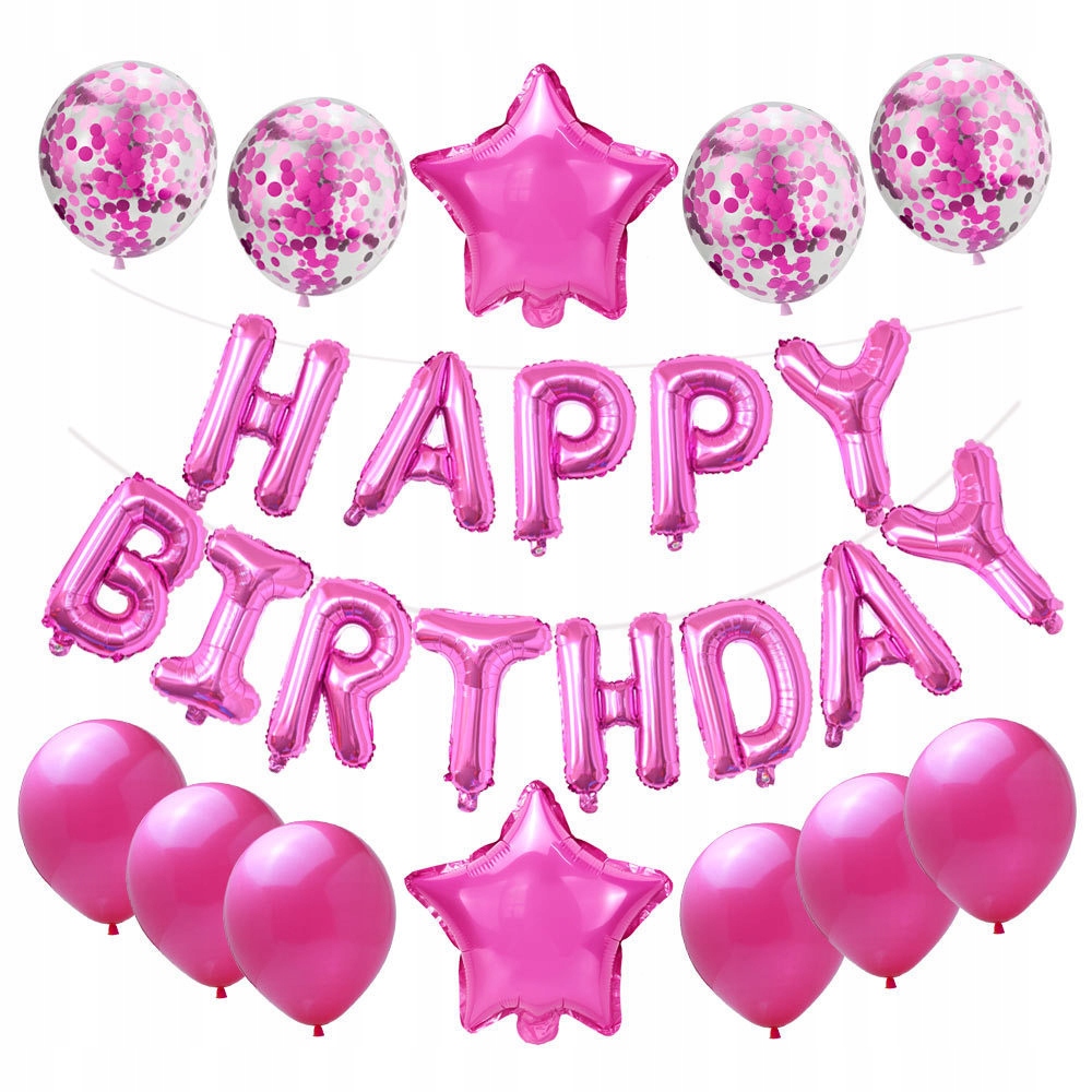 - 1 x Girlanda balonowa – balon foliowy “Happy Birthday” – różowy, 40 cm / 16 inch
