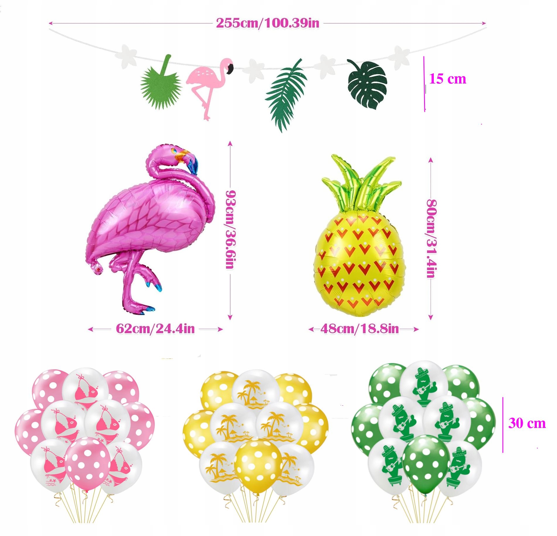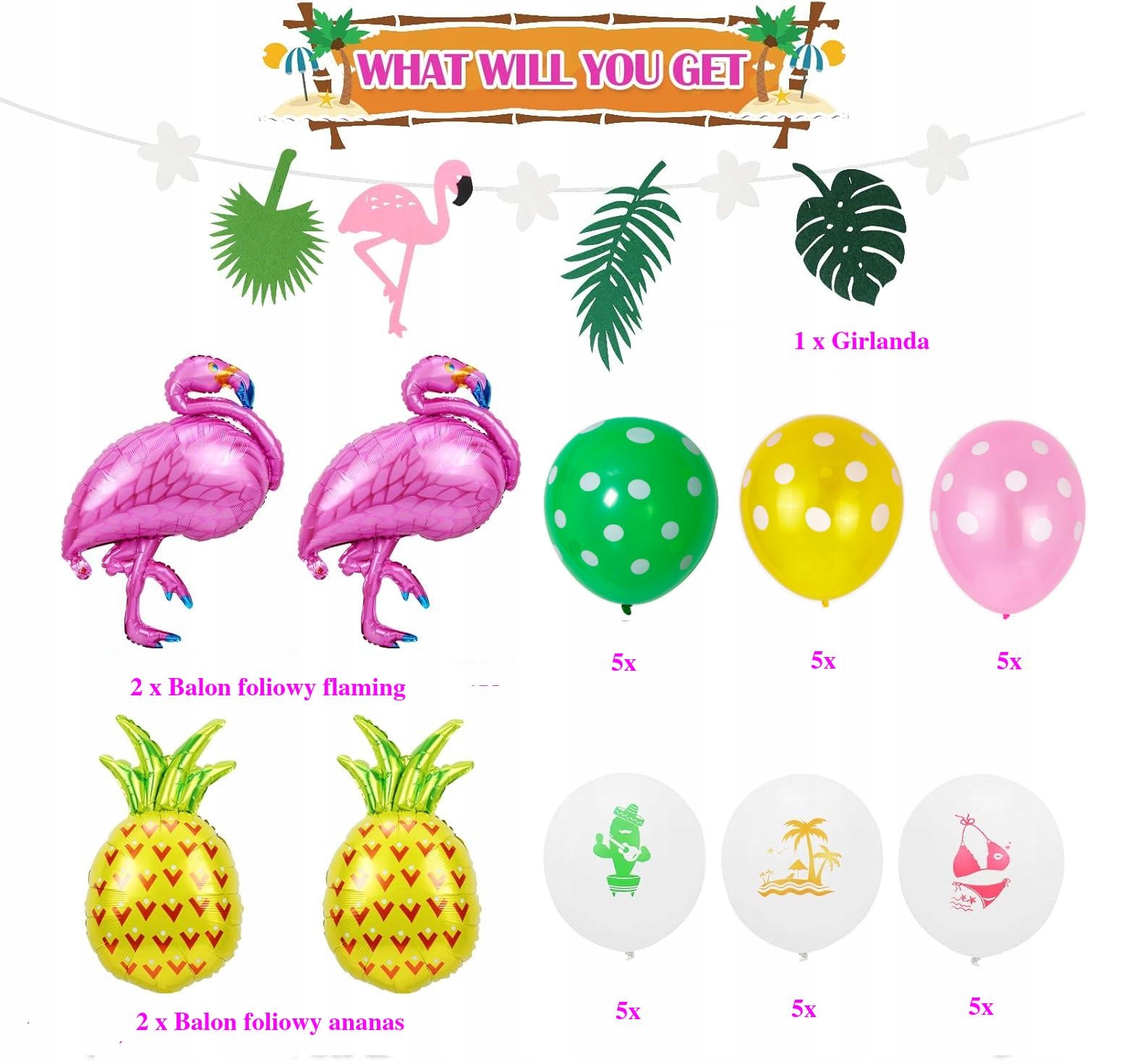 Girlanda + 2x Flaming + 2x Ananas + 30 Balonów Lateksowych