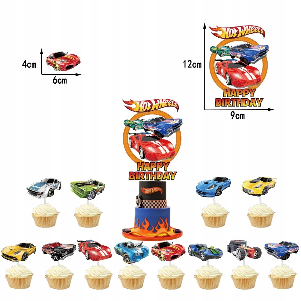 - 12 sztuk topperów na babeczki – samochody
