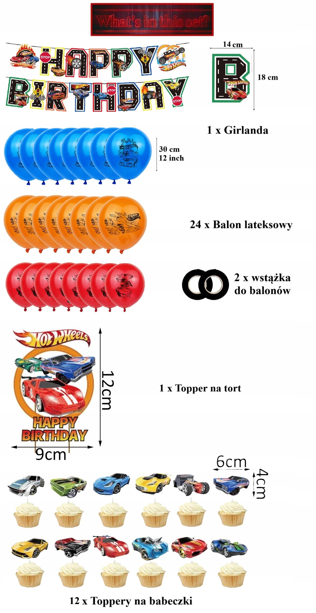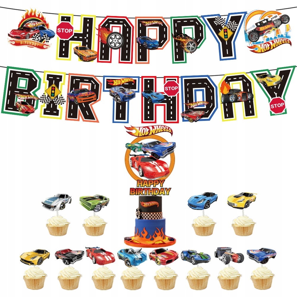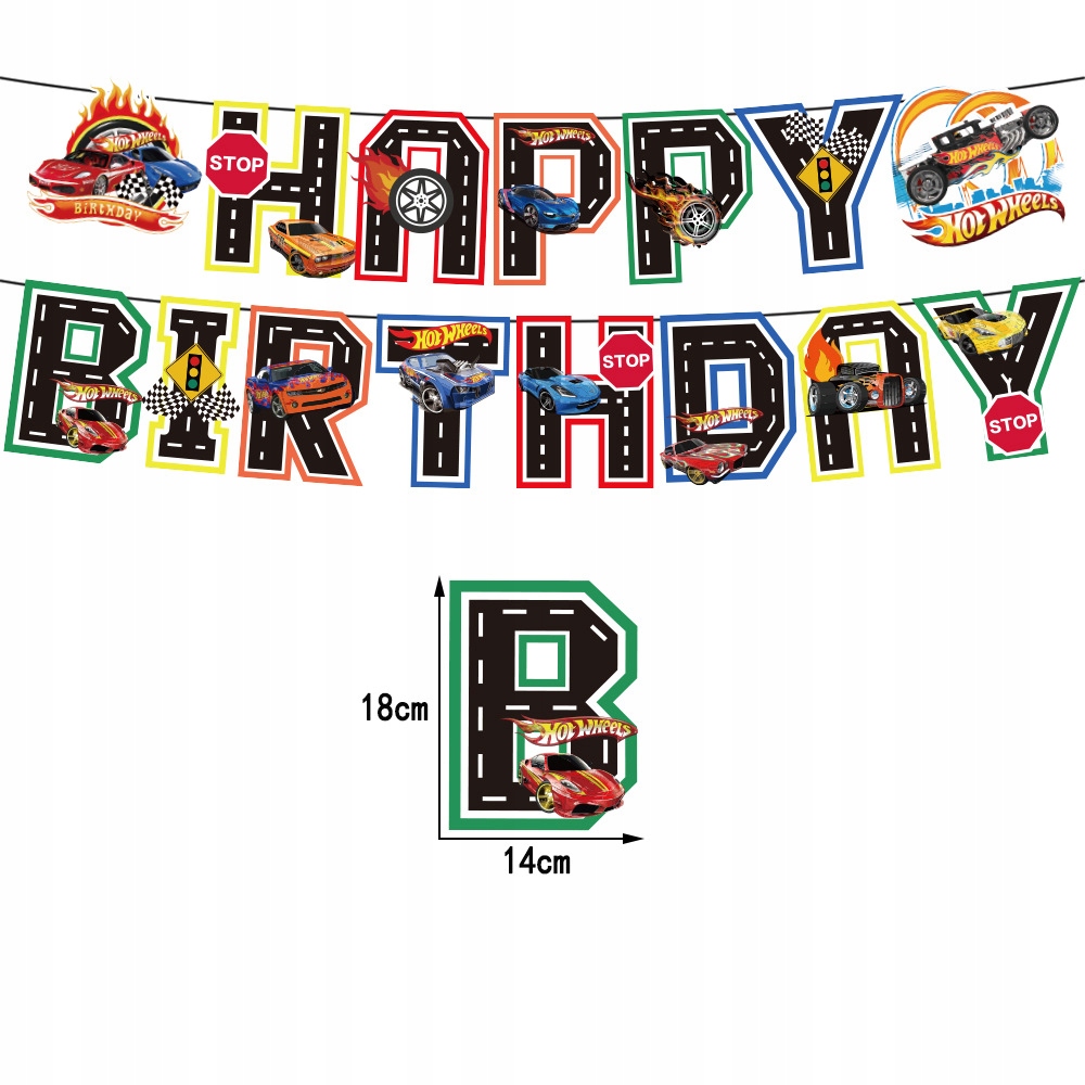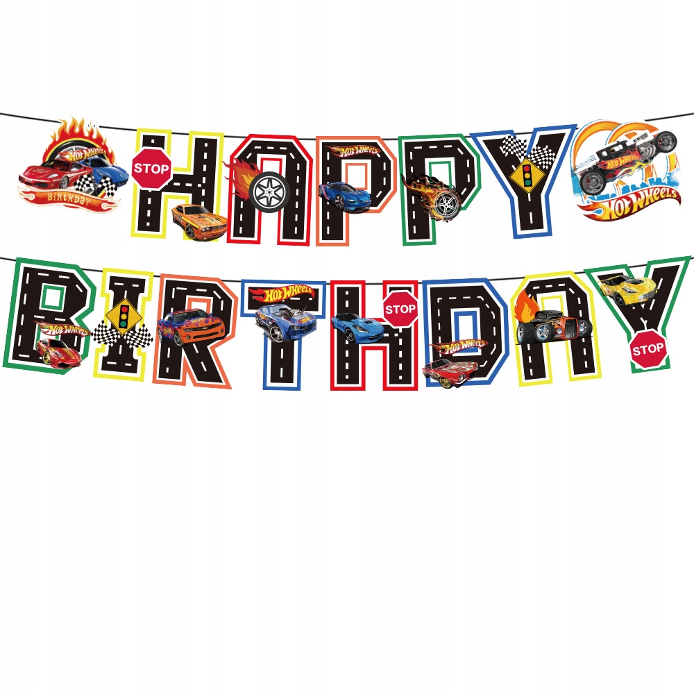 - 1 sztuka girlanda urodzinowa z napisem Happy Birthday – motyw Wyścigowy
