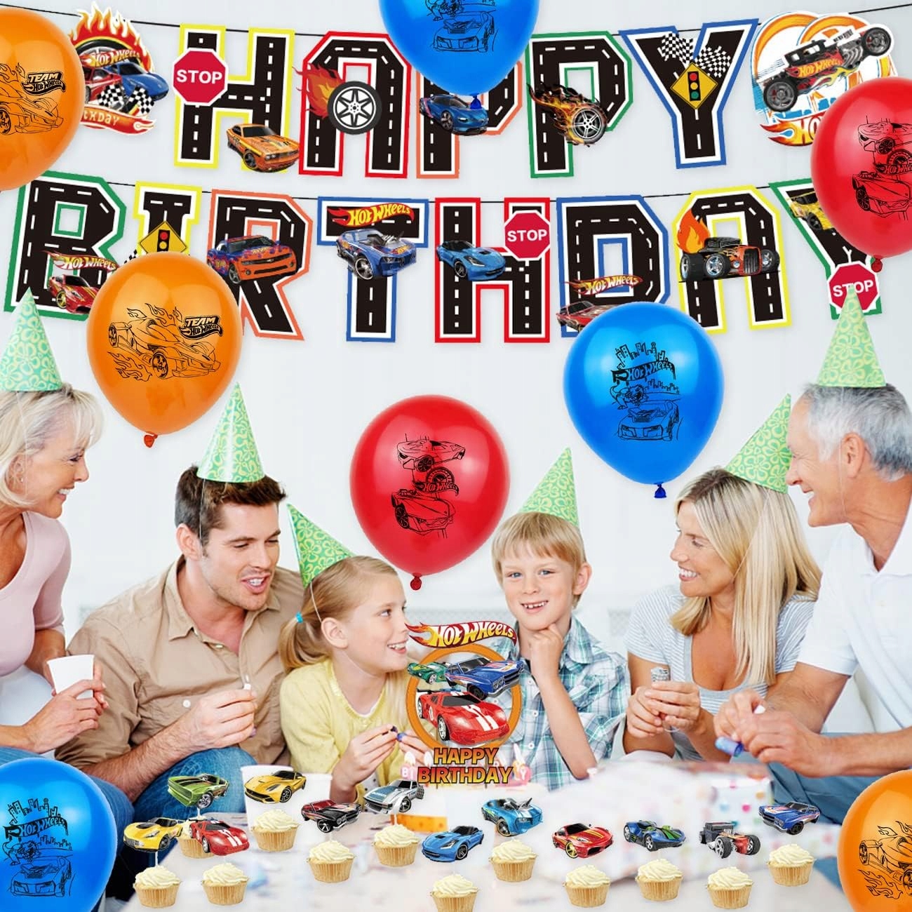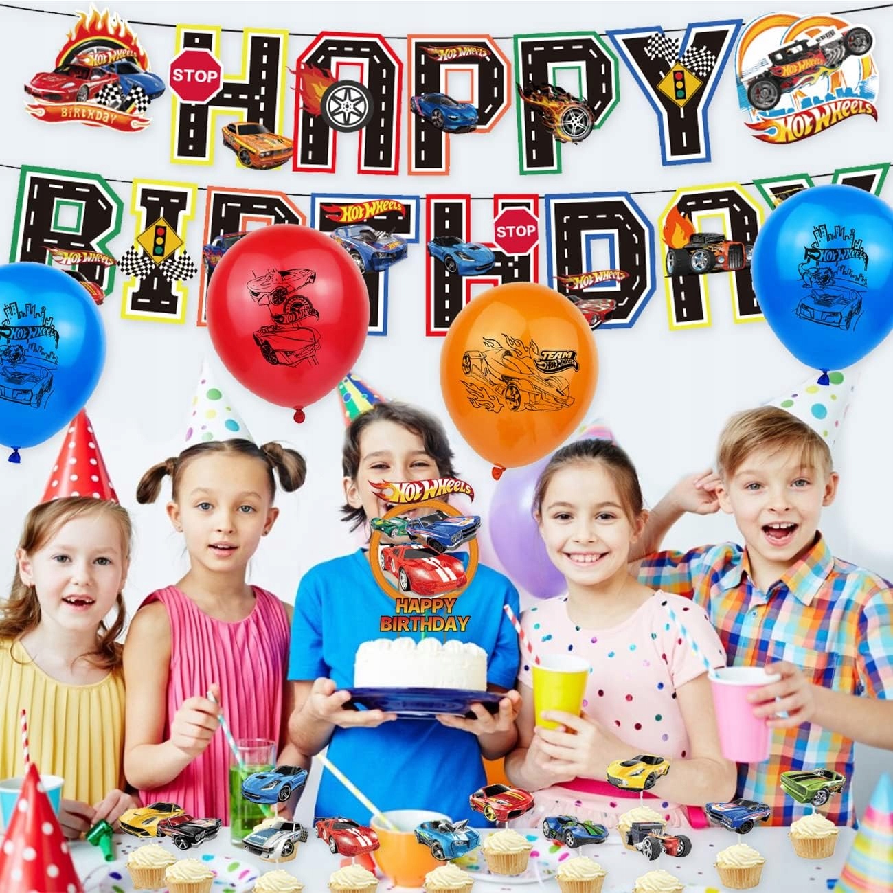 Oro Party Zestaw balonowych dekoracji urodzinowych Auta Wyścigi