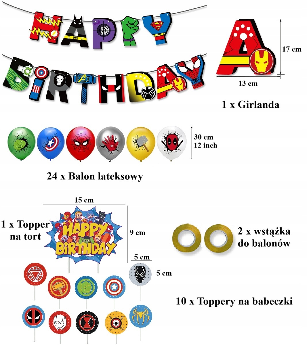 - 1 sztuka girlanda urodzinowa z napisem Happy Birthday – Avengers