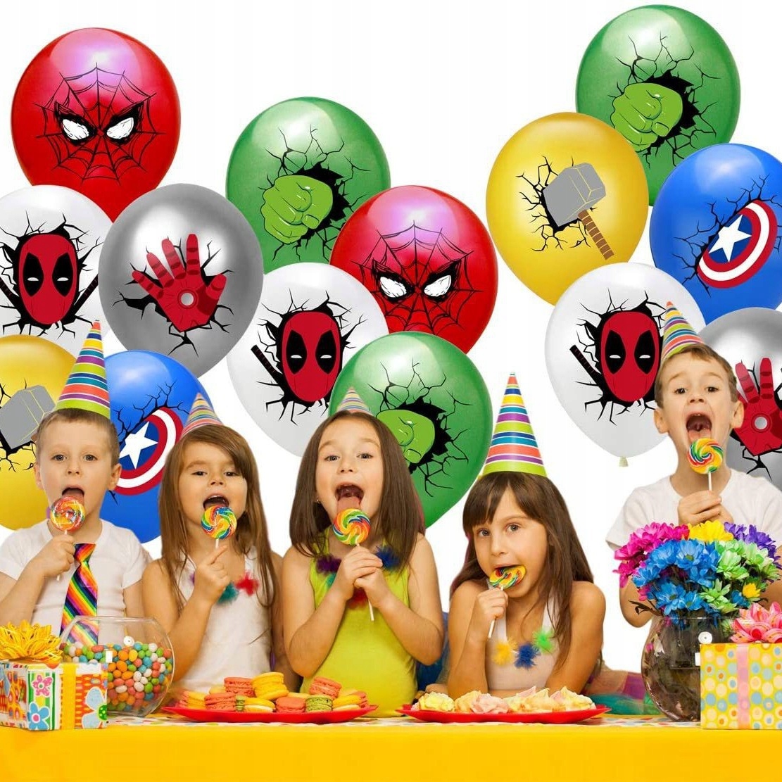 Oro Party Zestaw balonowych dekoracji urodzinowych Avengers Marvel. Gotowy zestaw dekoracji, który zamieni każde urodziny w niezapomniane święto superbohaterów!
