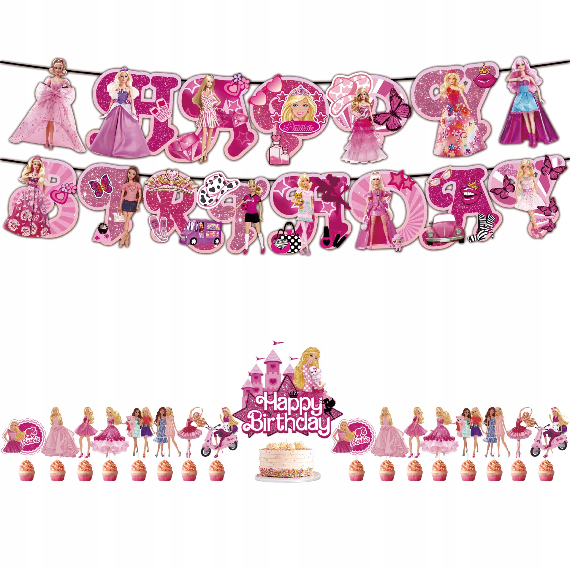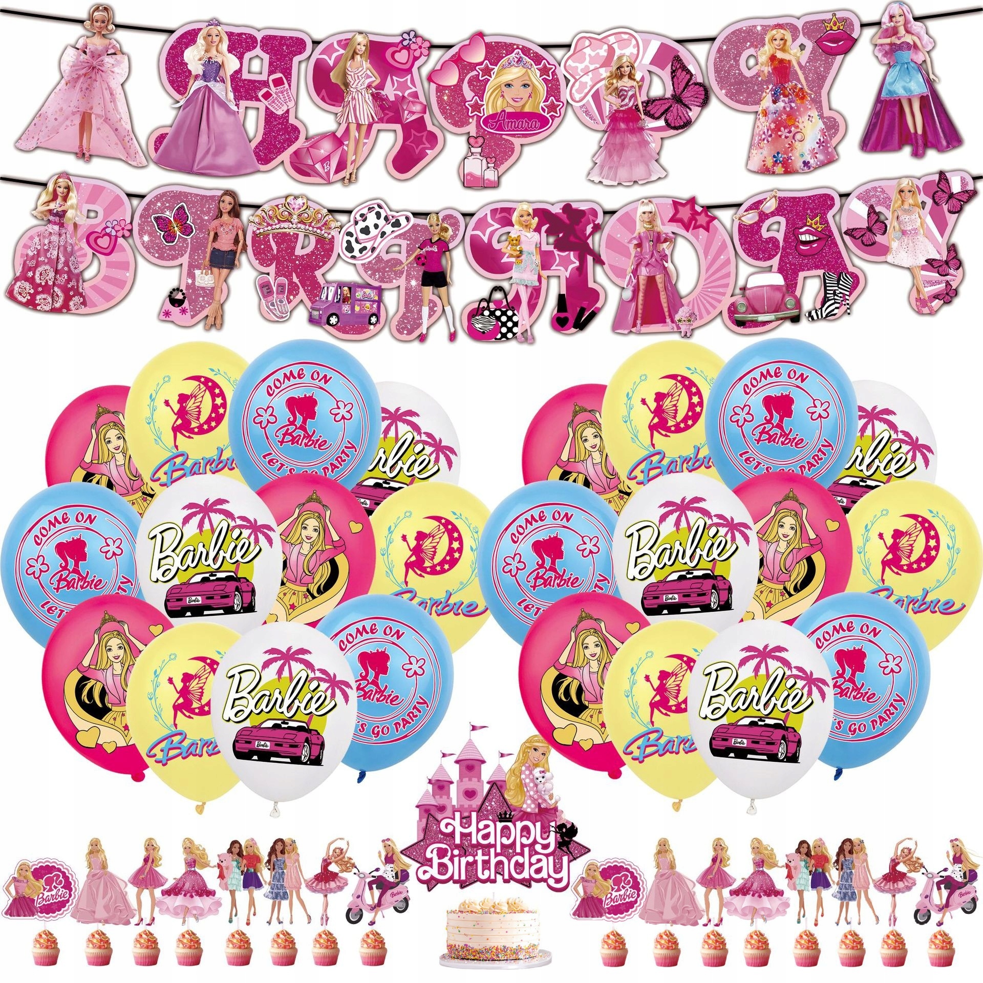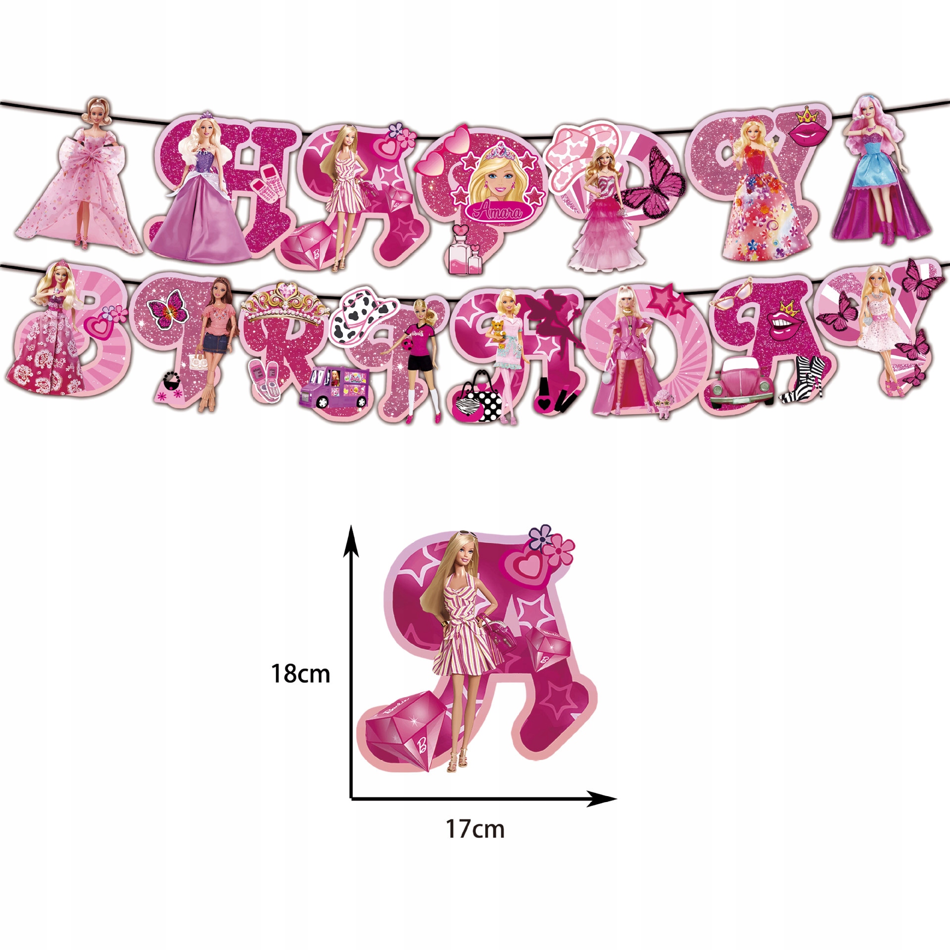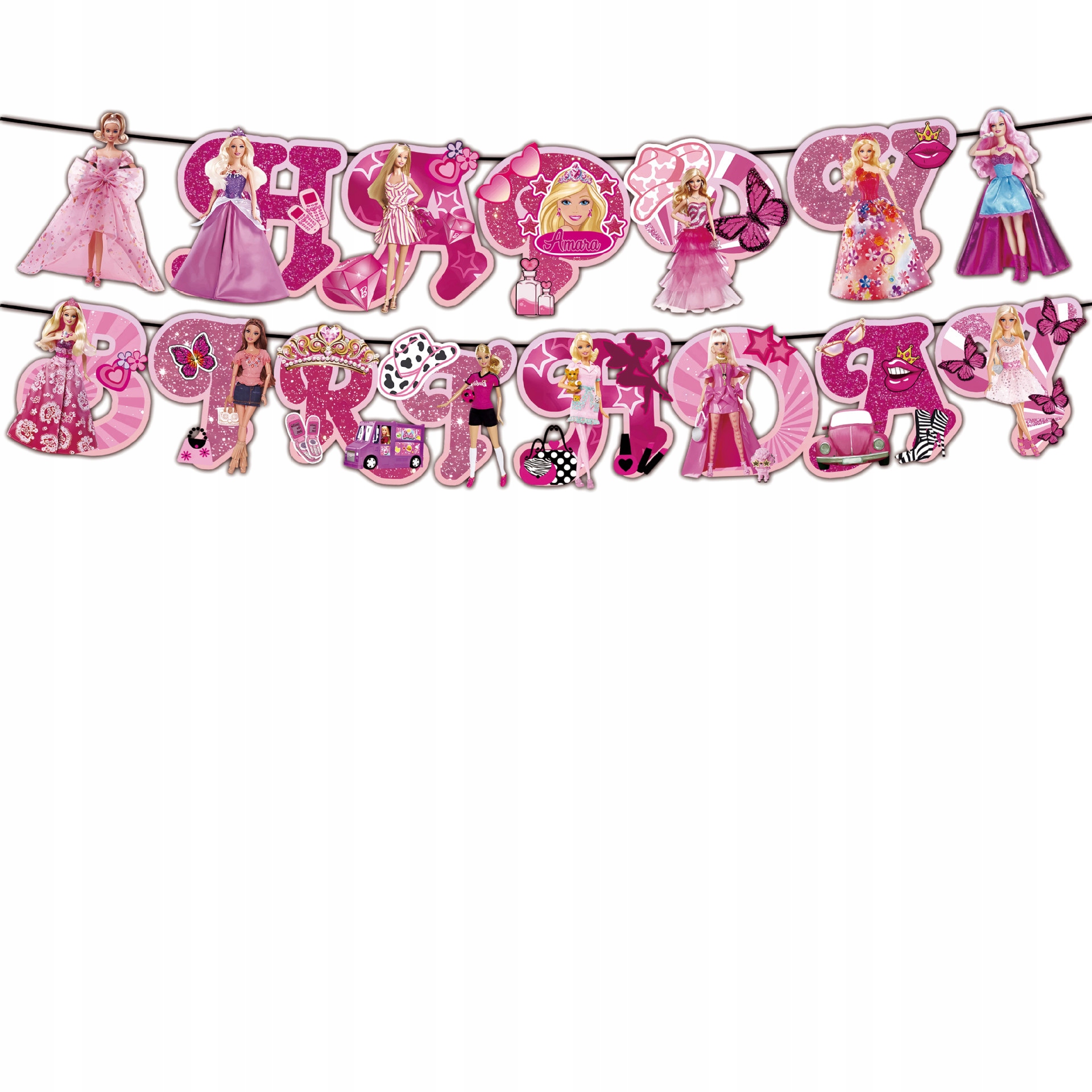 - 1 sztuka girlanda urodzinowa z napisem Happy Birthday – Barbie