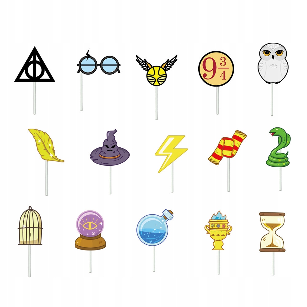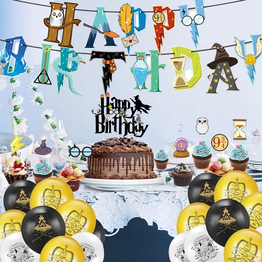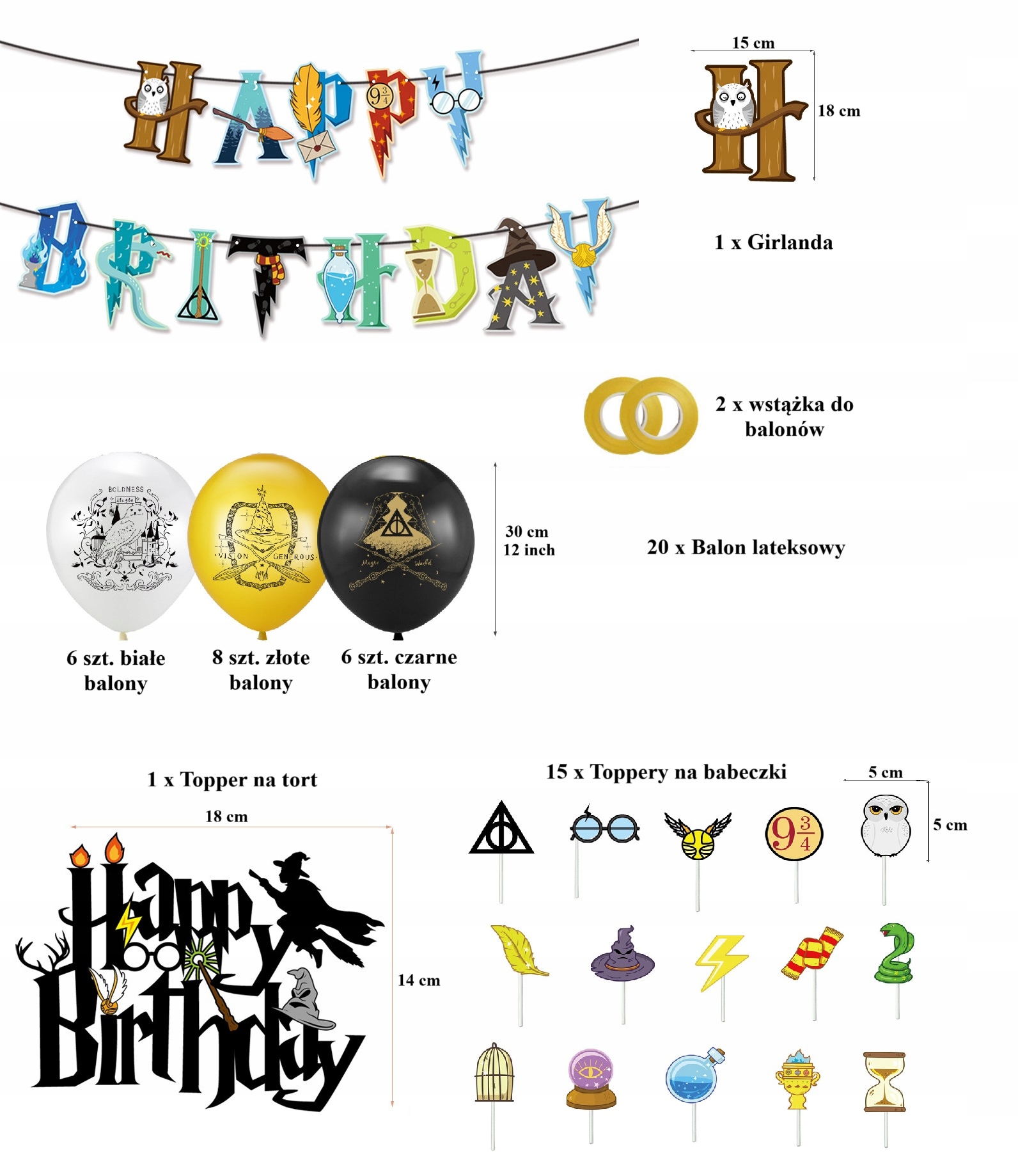 Zestaw balonowych dekoracji urodzinowych Harry Potter + Girlanda + Topper na tort i toppery na babeczki