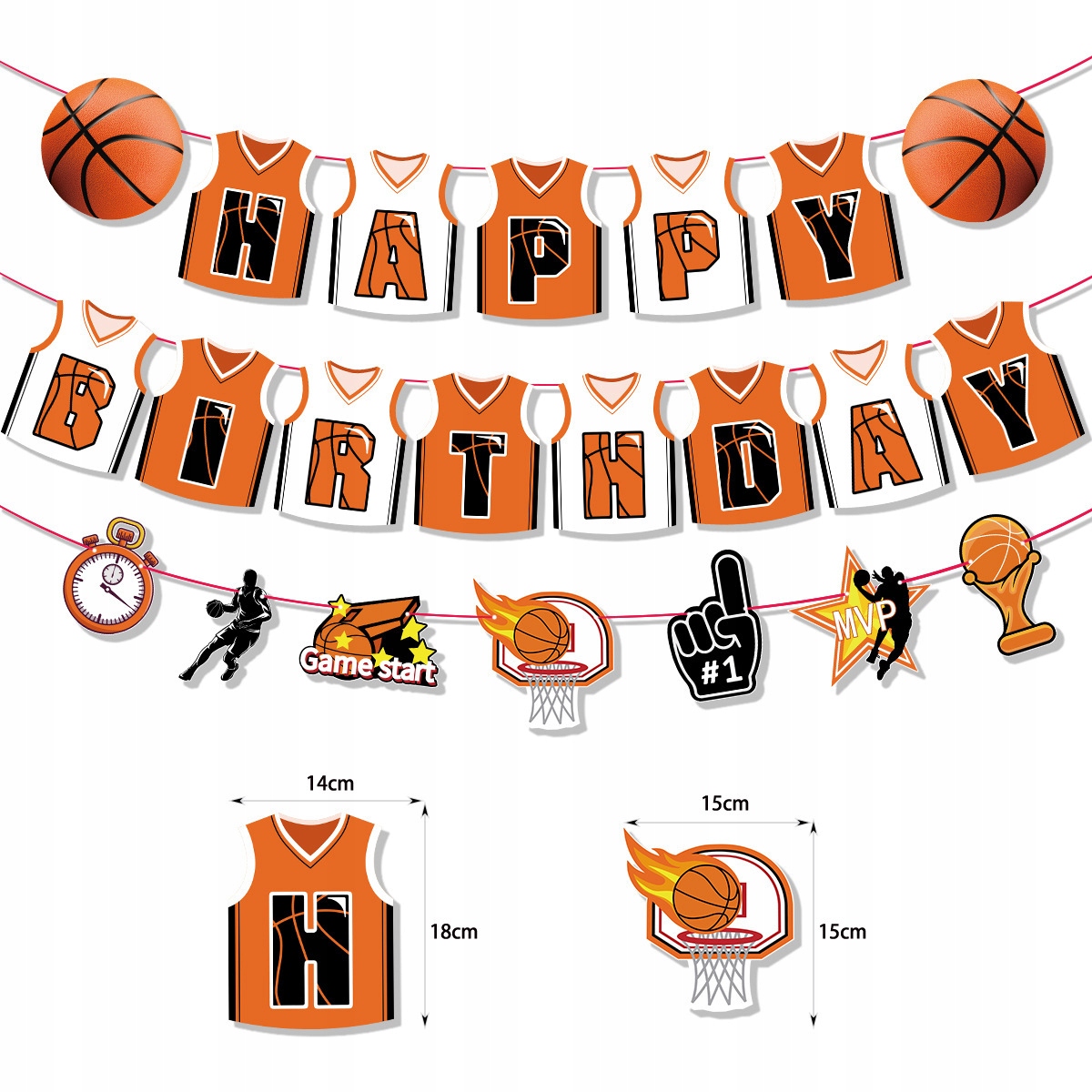 • 1 sztuka girlanda urodzinowa – motyw koszykówki