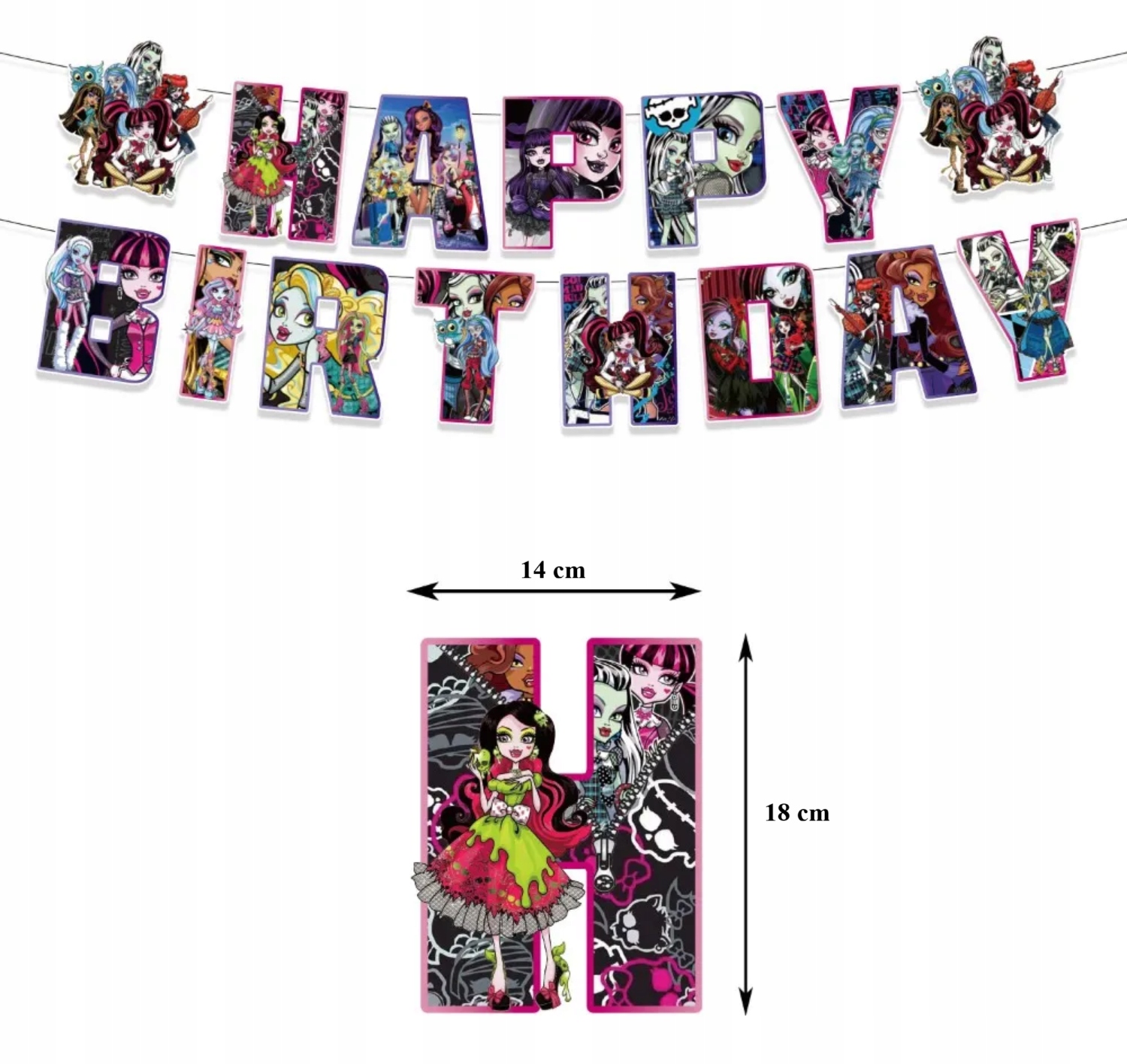 - 1 sztuka girlanda urodzinowa z napisem Happy Birthday – Monster High