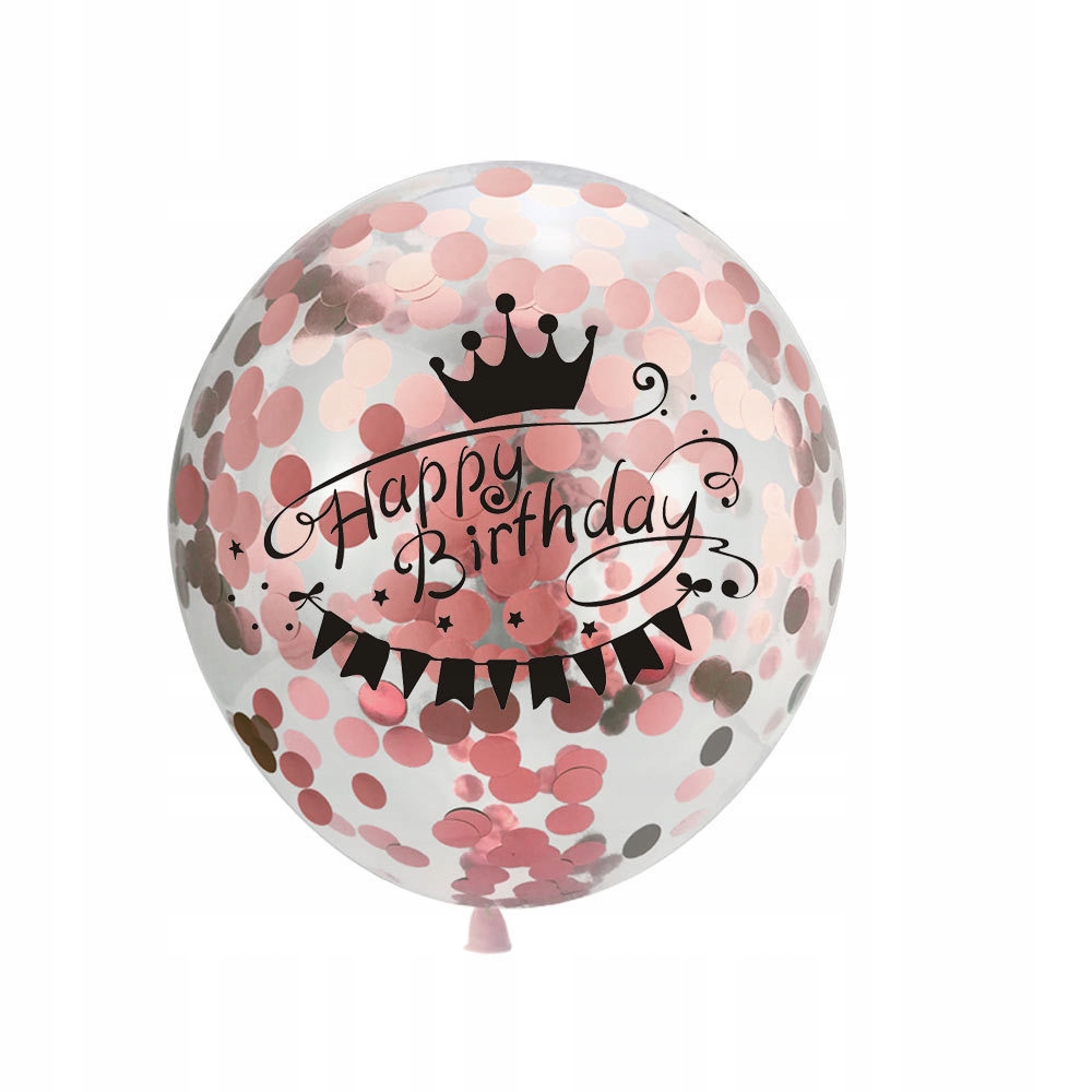 - 1 sztuka balon przezroczysty z konfetti różowo-złotym z napisem „Happy Birthday”