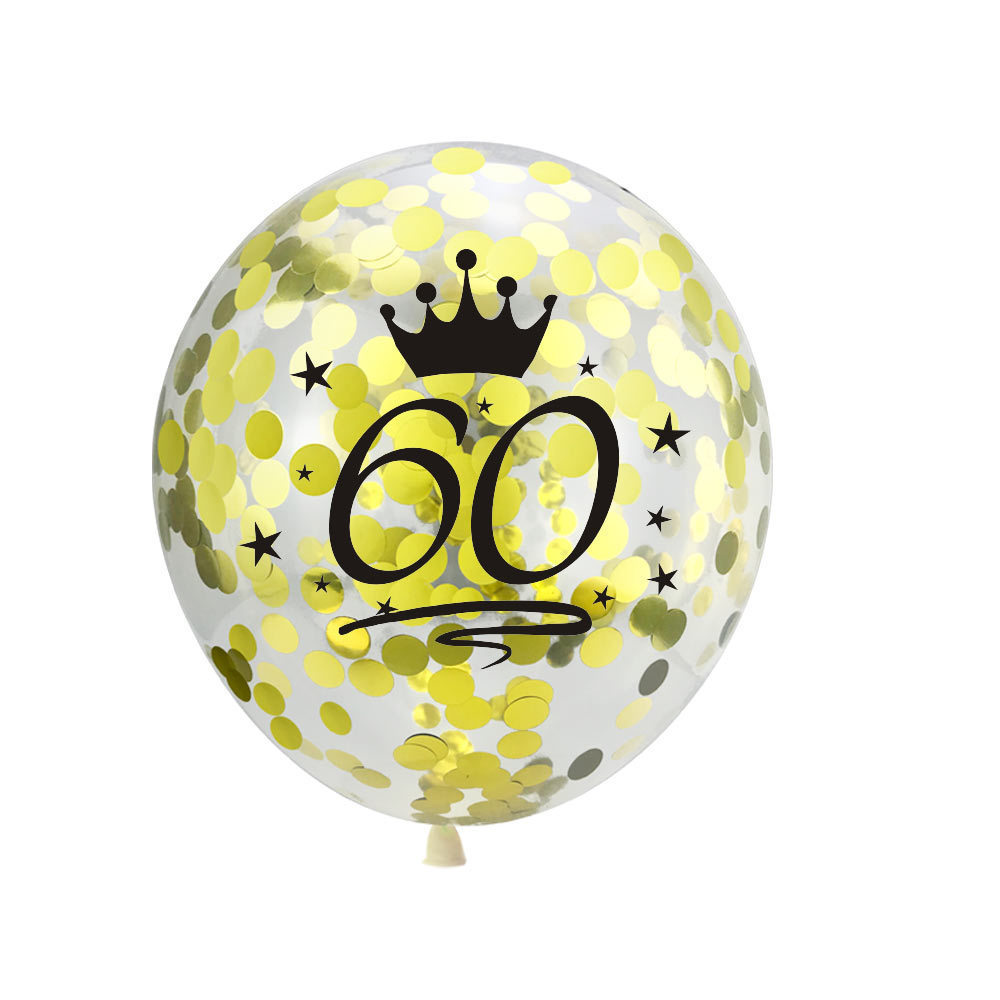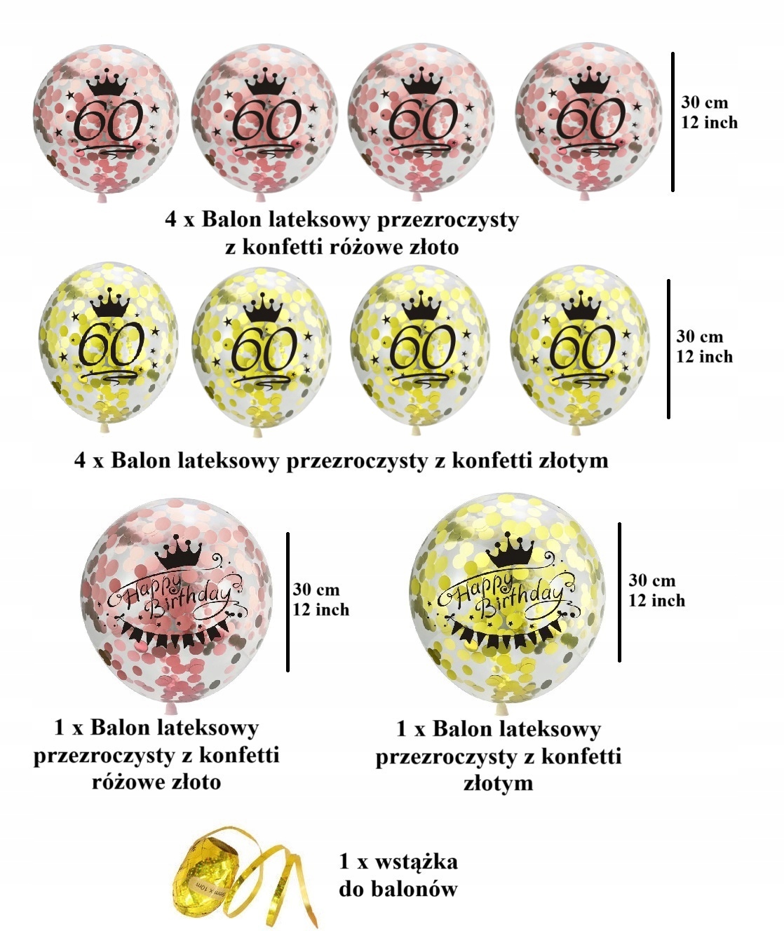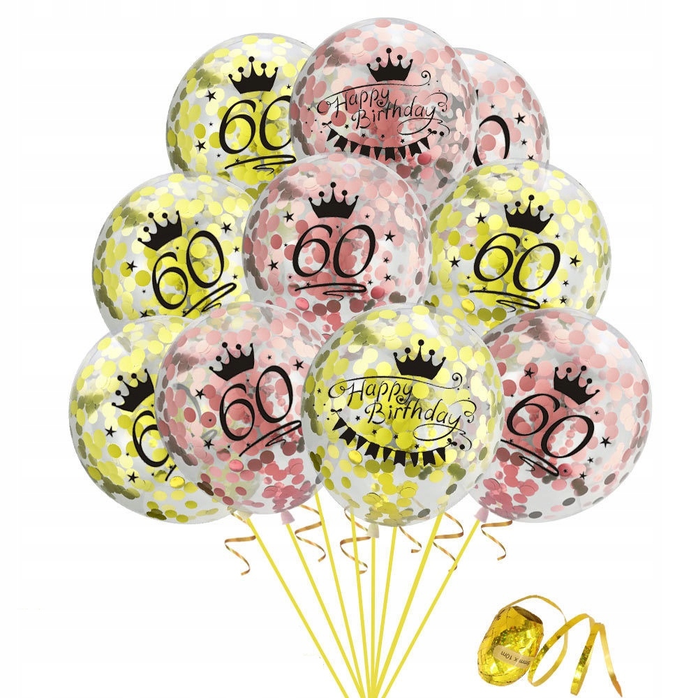 Oro Party Zestaw balonowych dekoracji urodzinowych na 60 urodziny 10 sztuk balonów przezroczystych z konfetti