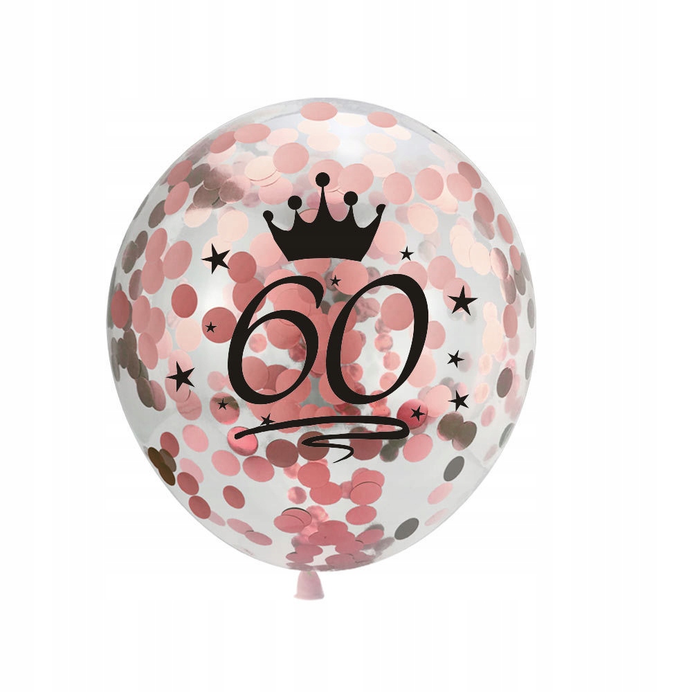 - 4 sztuki balon przezroczysty z konfetti różowo-złotym i nadrukiem „60” i korona