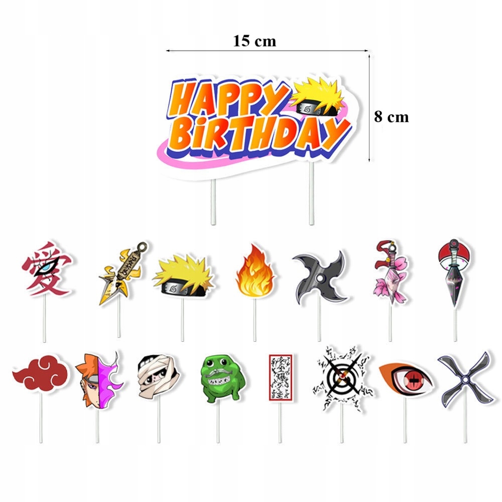 - 15 sztuk topperów na babeczki – motyw Naruto