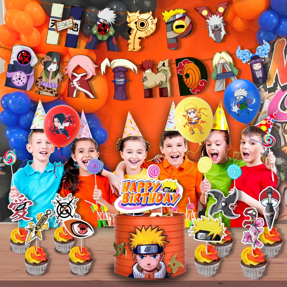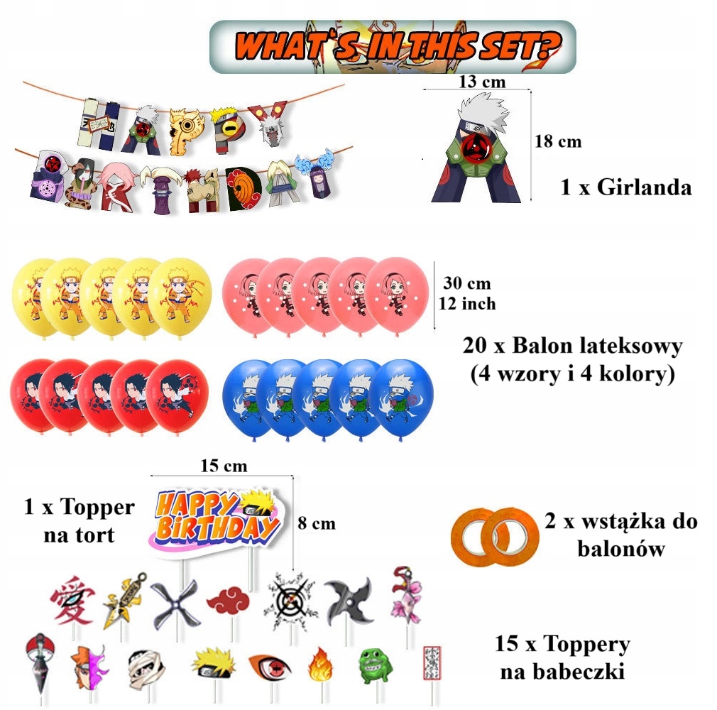 Zestaw balonowych dekoracji urodzinowych Naruto + Girlanda + Topper