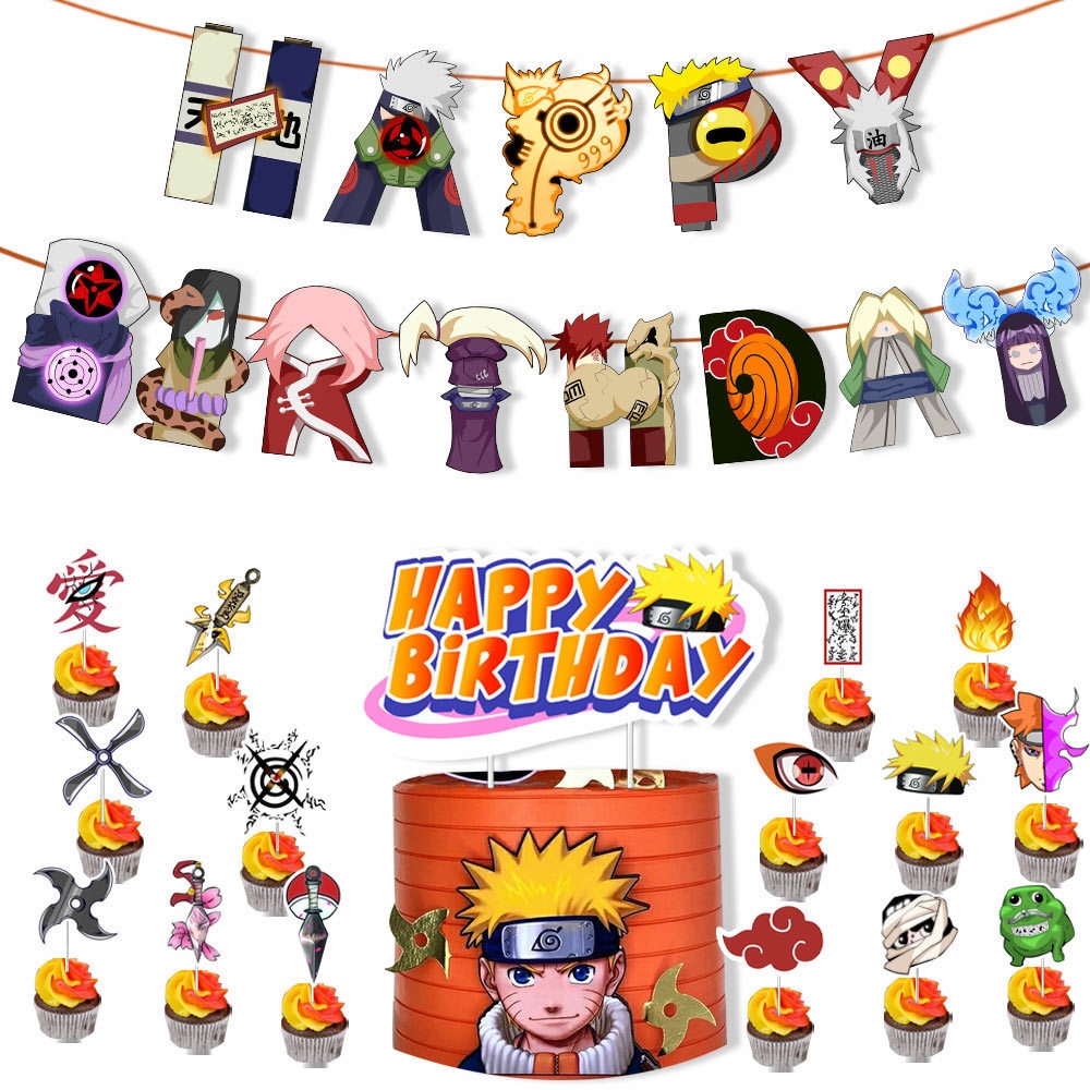 - 1 sztuka girlanda urodzinowa z napisem Happy Birthday – motyw Naruto