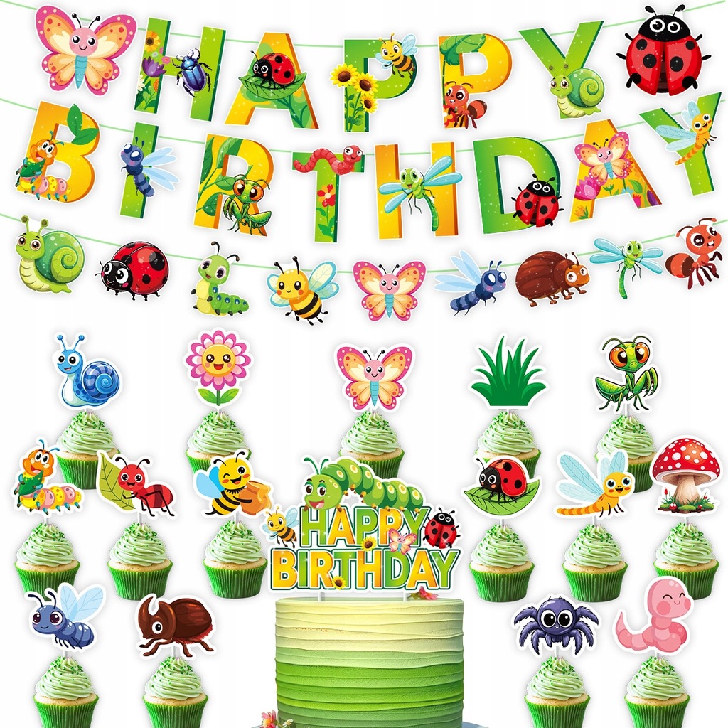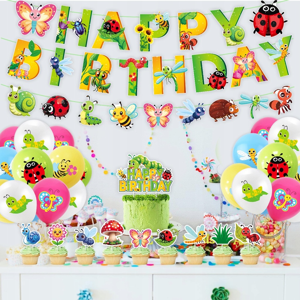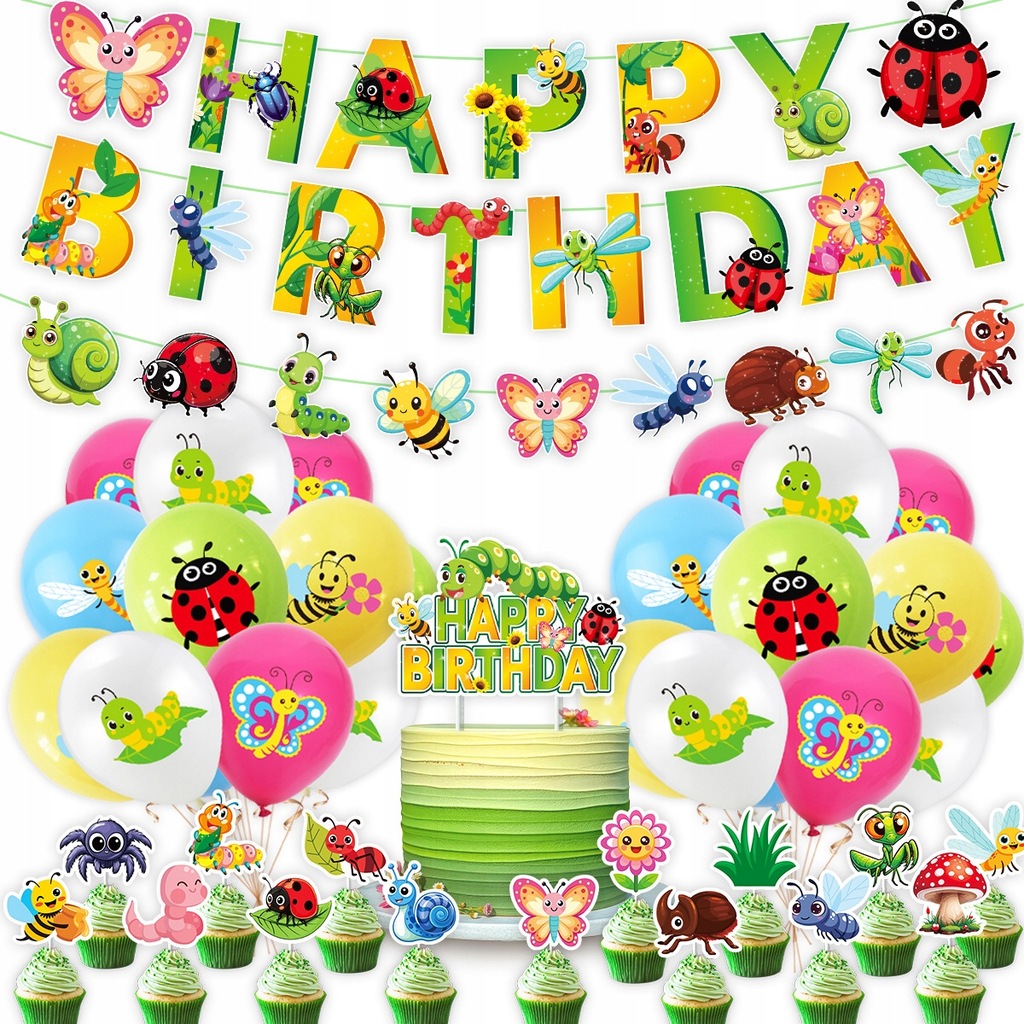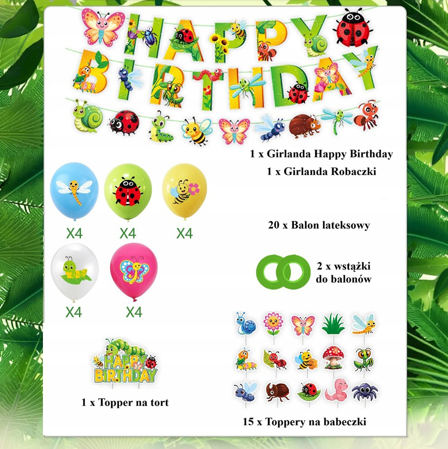 Oro Party Zestaw balonowych dekoracji urodzinowych Robaczki + 2 x Girlanda + Topper na Tort + Toppery na Babeczki