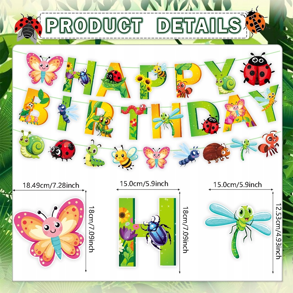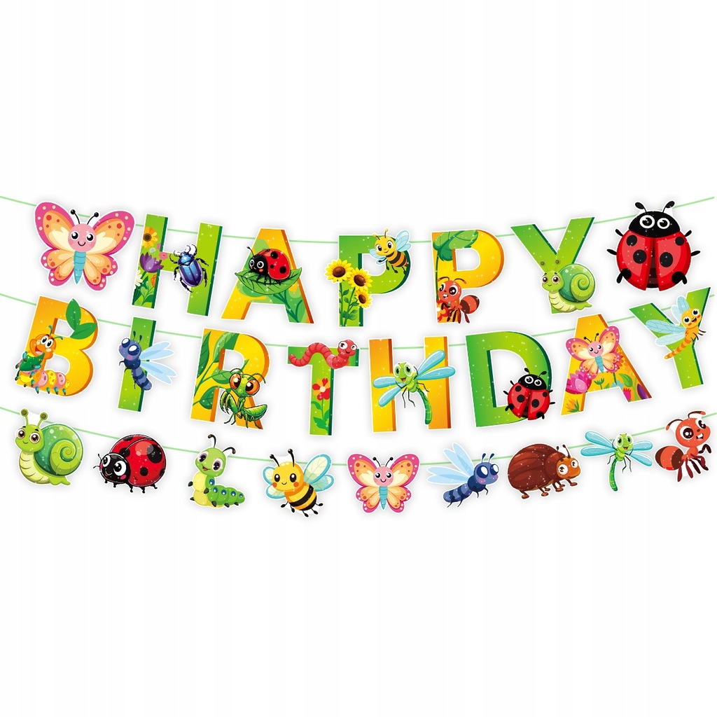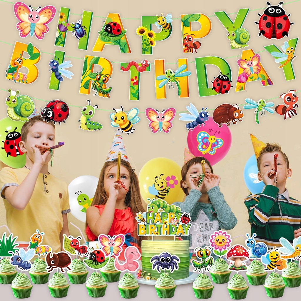 Oro Party Zestaw balonowych dekoracji urodzinowych Robaczki + 2 x Girlanda + Topper na Tort + Toppery na Babeczki