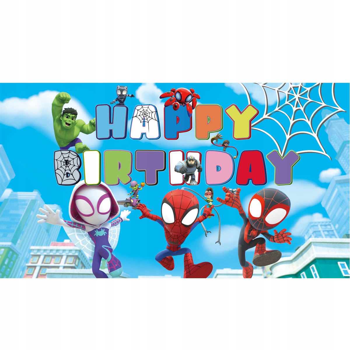 - 1 sztuka Baner urodzinowy 150 cm x 100 cm z napisem “Happy Birthday” – z motywami Spider Man Hulk