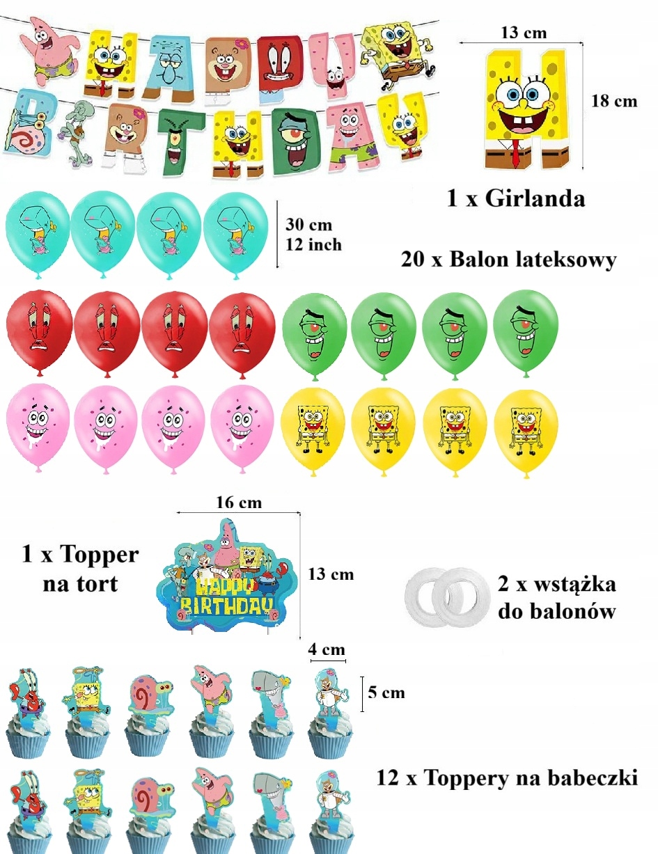 • 20 sztuk balonów lateksowych z nadrukami z motywem SpongeBob: