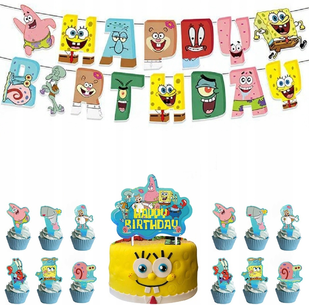 • 1 sztuka girlanda urodzinowa z napisem Happy Birthday – SpongeBob