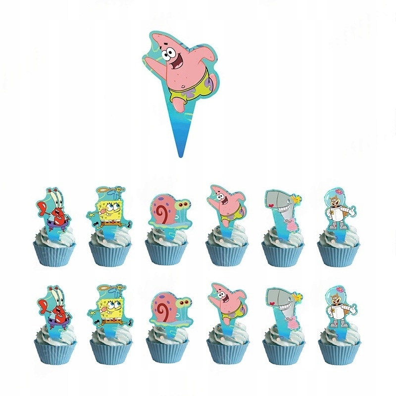 • 12 sztuk topperów na babeczki – motyw SpongeBob