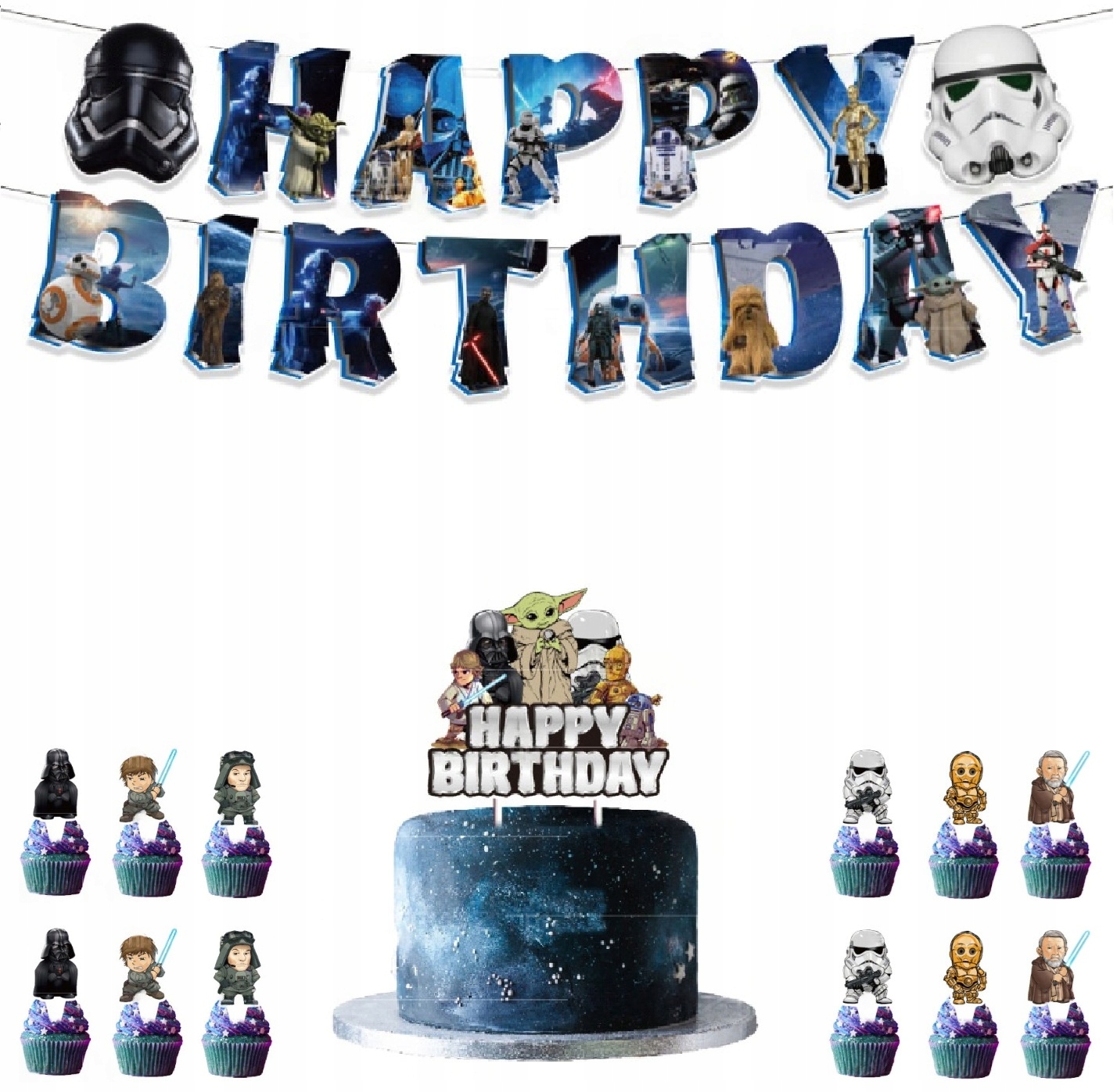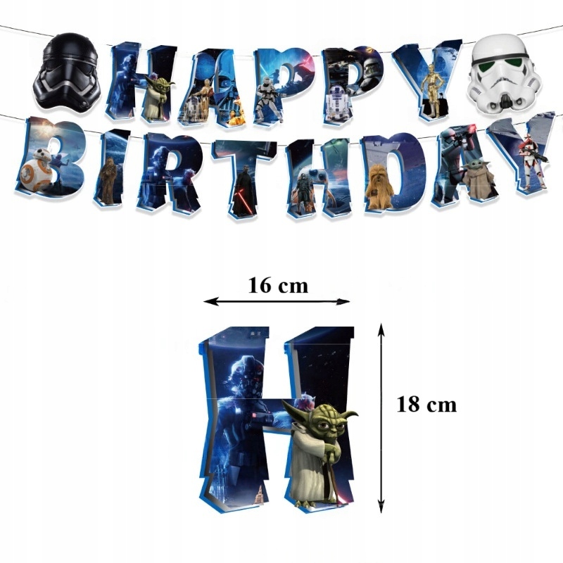 • 1 sztuka girlanda urodzinowa z napisem Happy Birthday – Star Wars