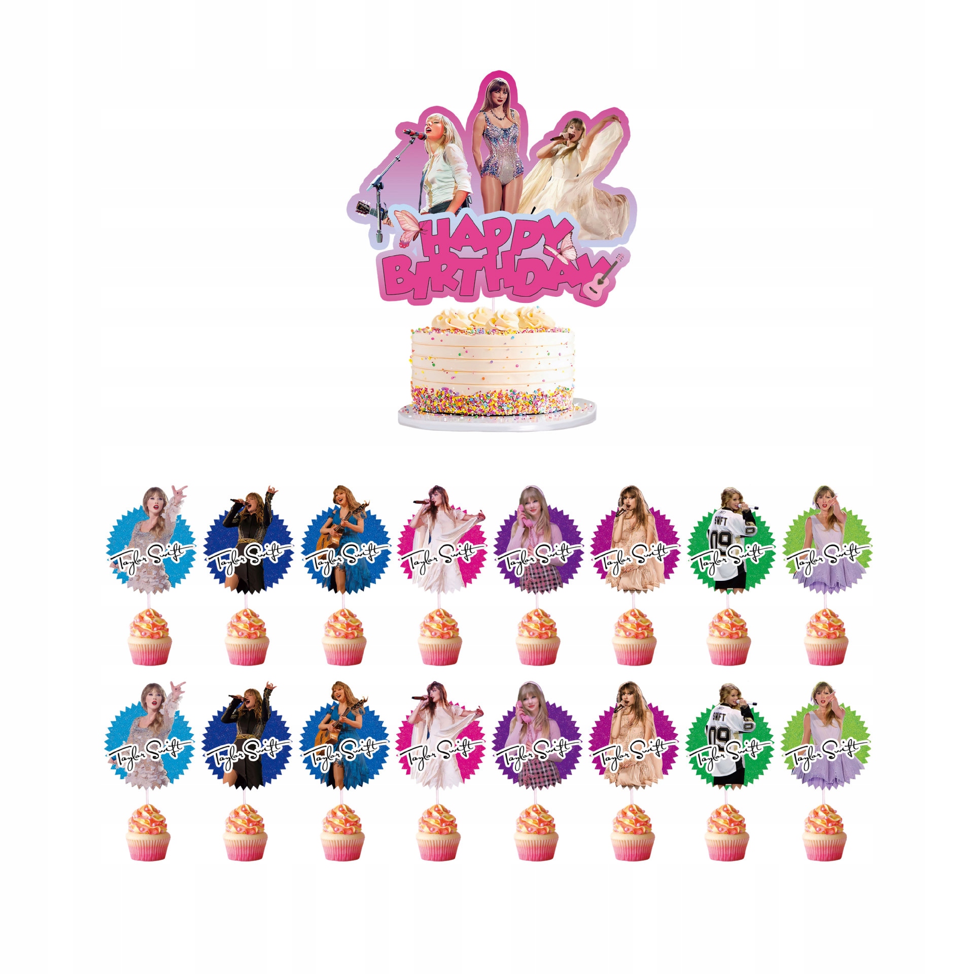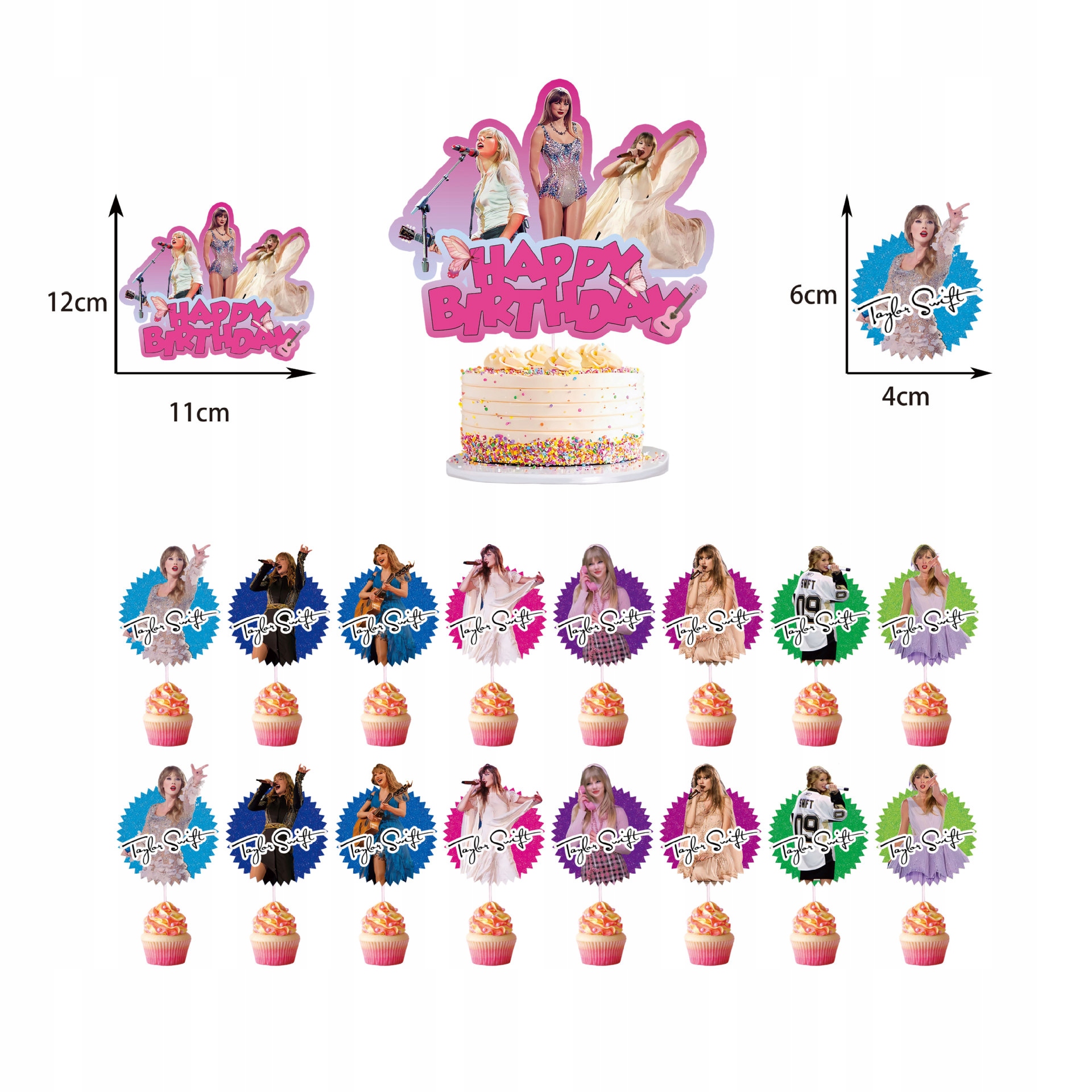 - 16 sztuk topperów na babeczki – motyw Taylor Swift
