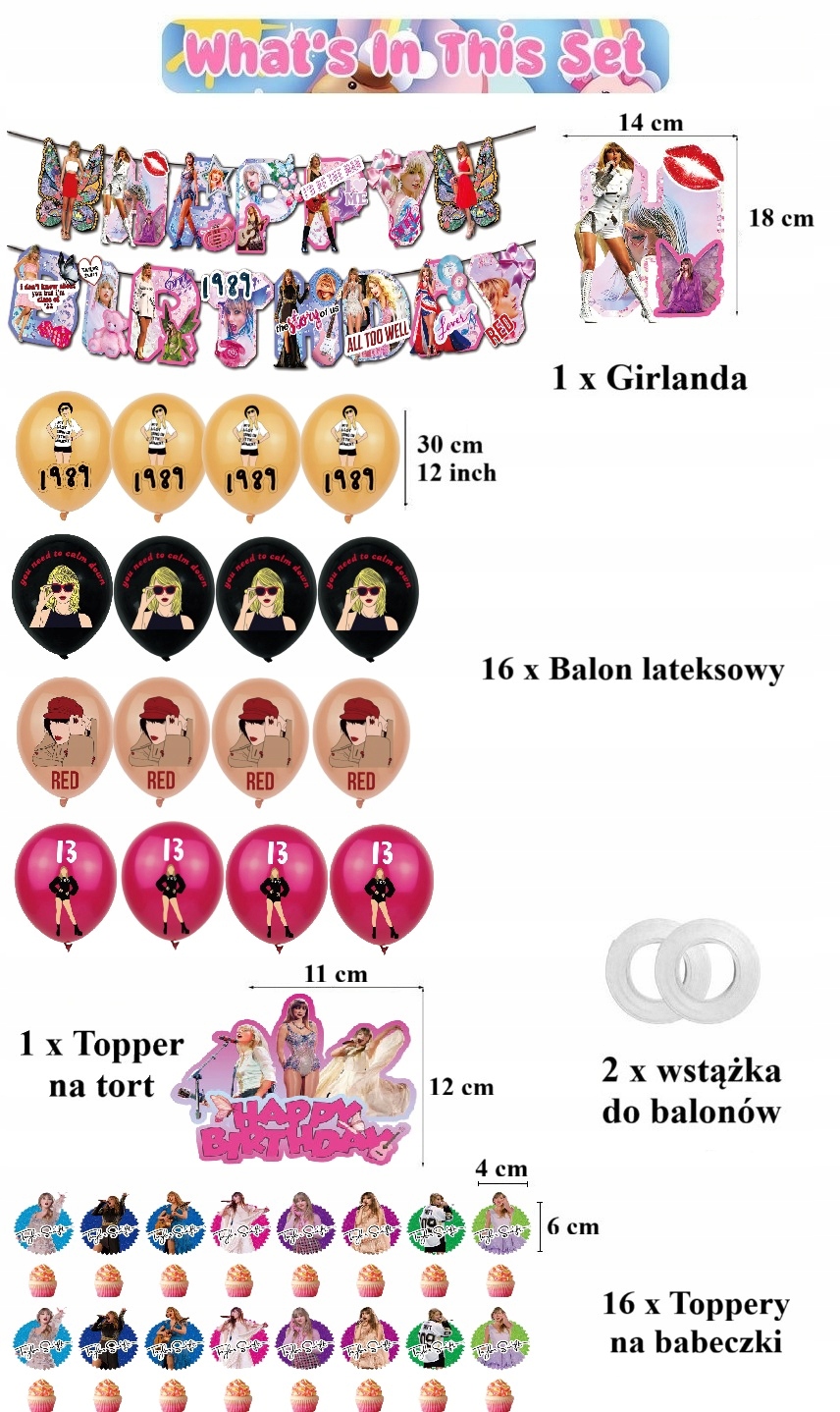 - 16 sztuk balonów lateksowych z nadrukami z motywem Taylor Swift: