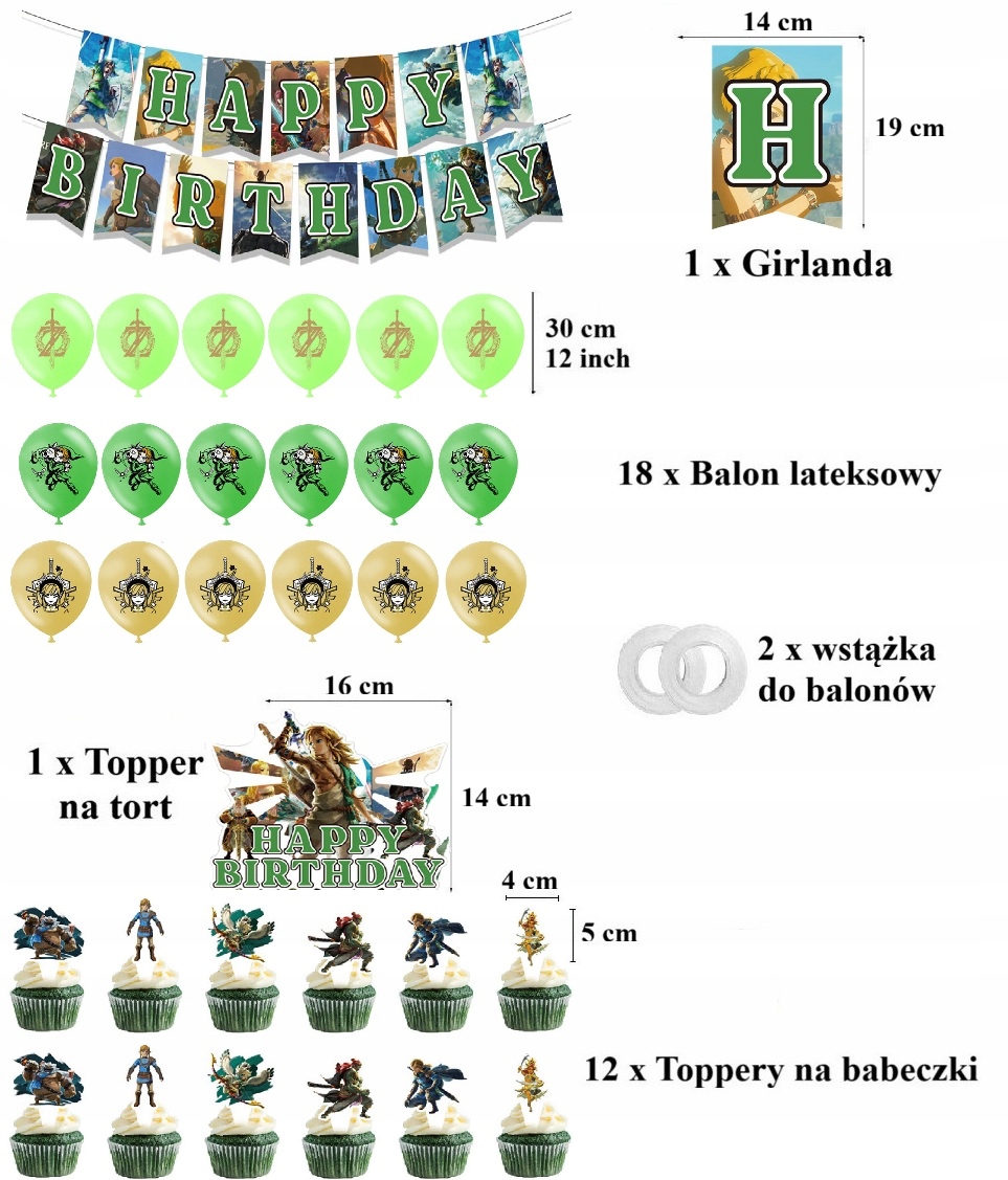 - 18 sztuk balonów lateksowych z nadrukami z motywem The Legend of Zelda: