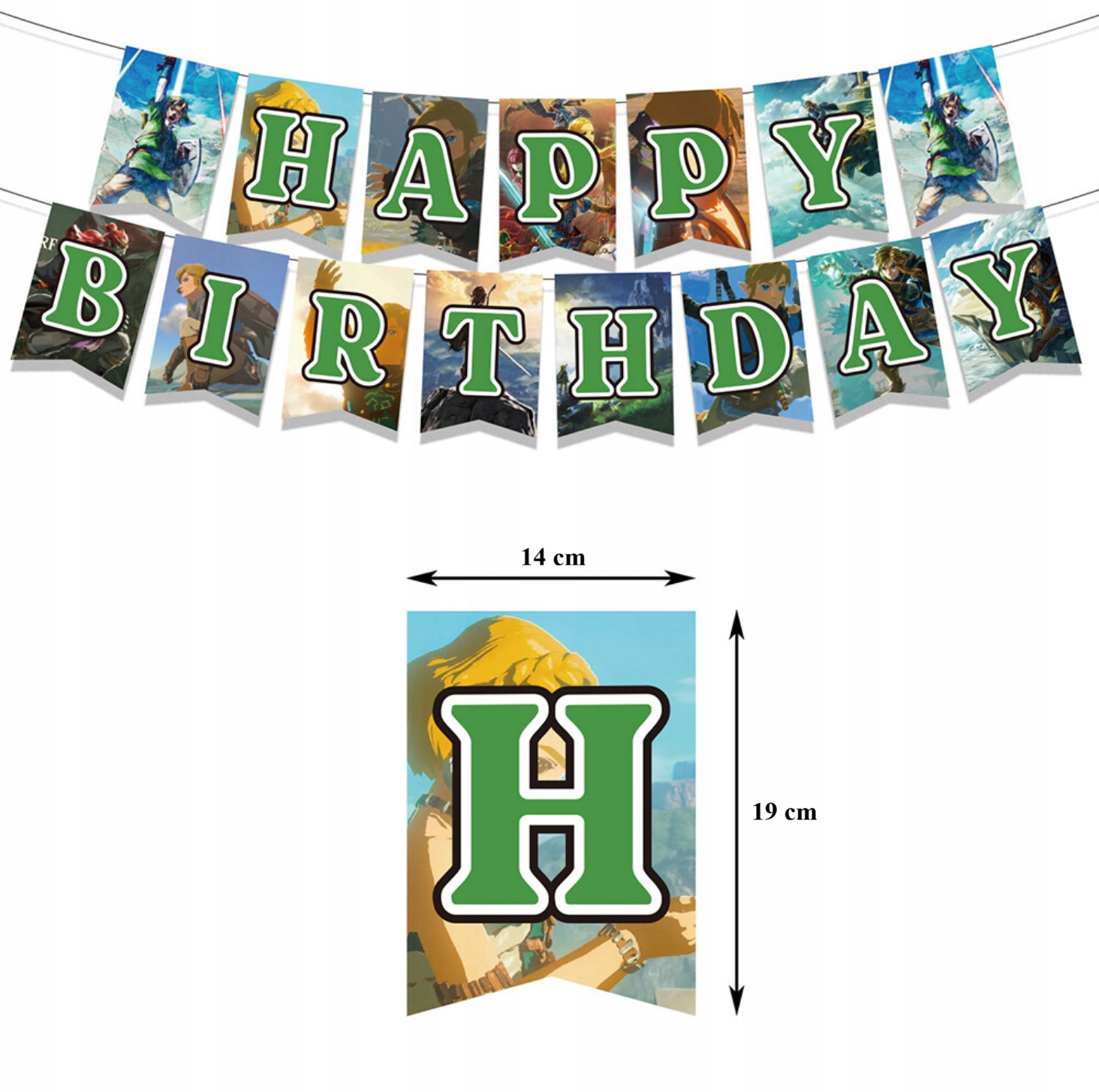 - 1 sztuka girlanda urodzinowa z napisem Happy Birthday – The Legend of Zelda