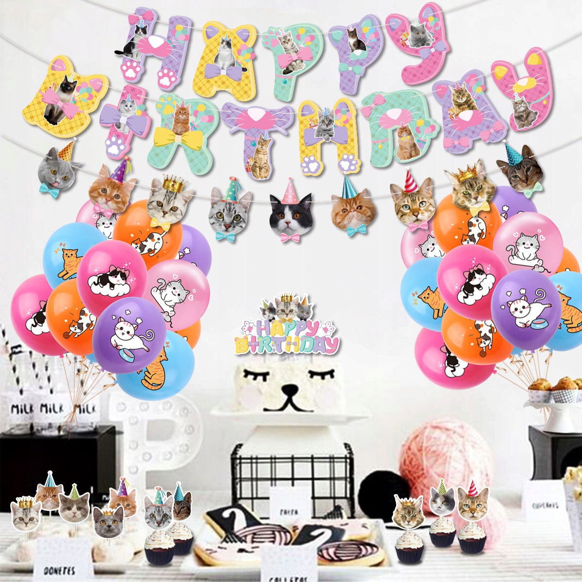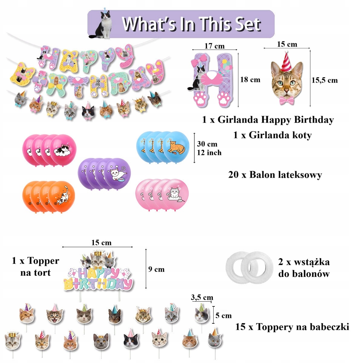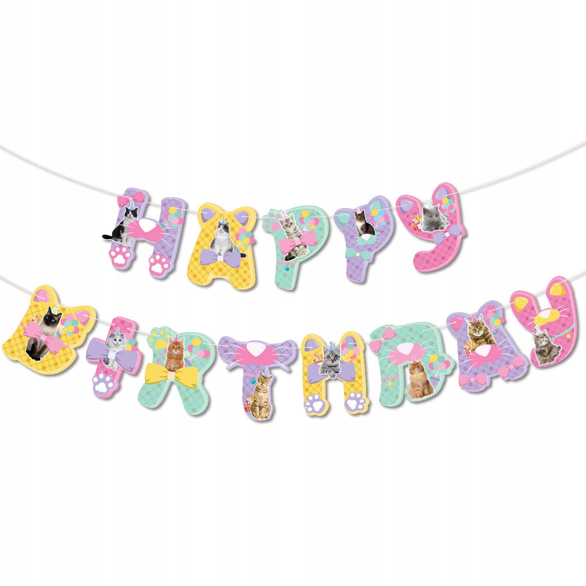 • 1 sztuka girlanda urodzinowa z napisem Happy Birthday – motyw koty
