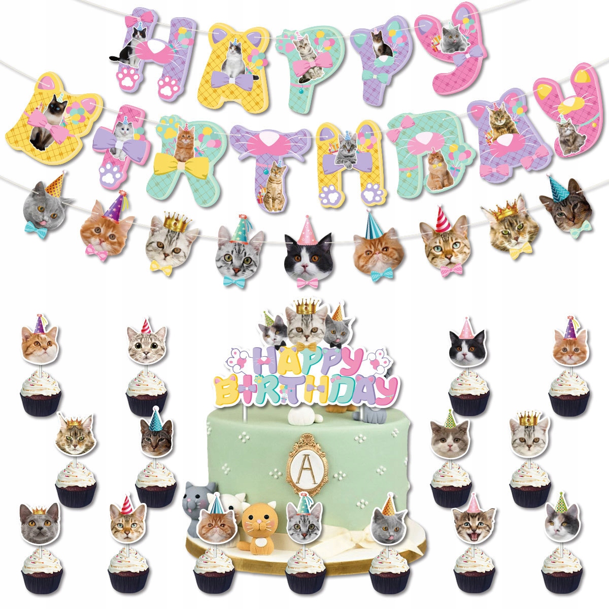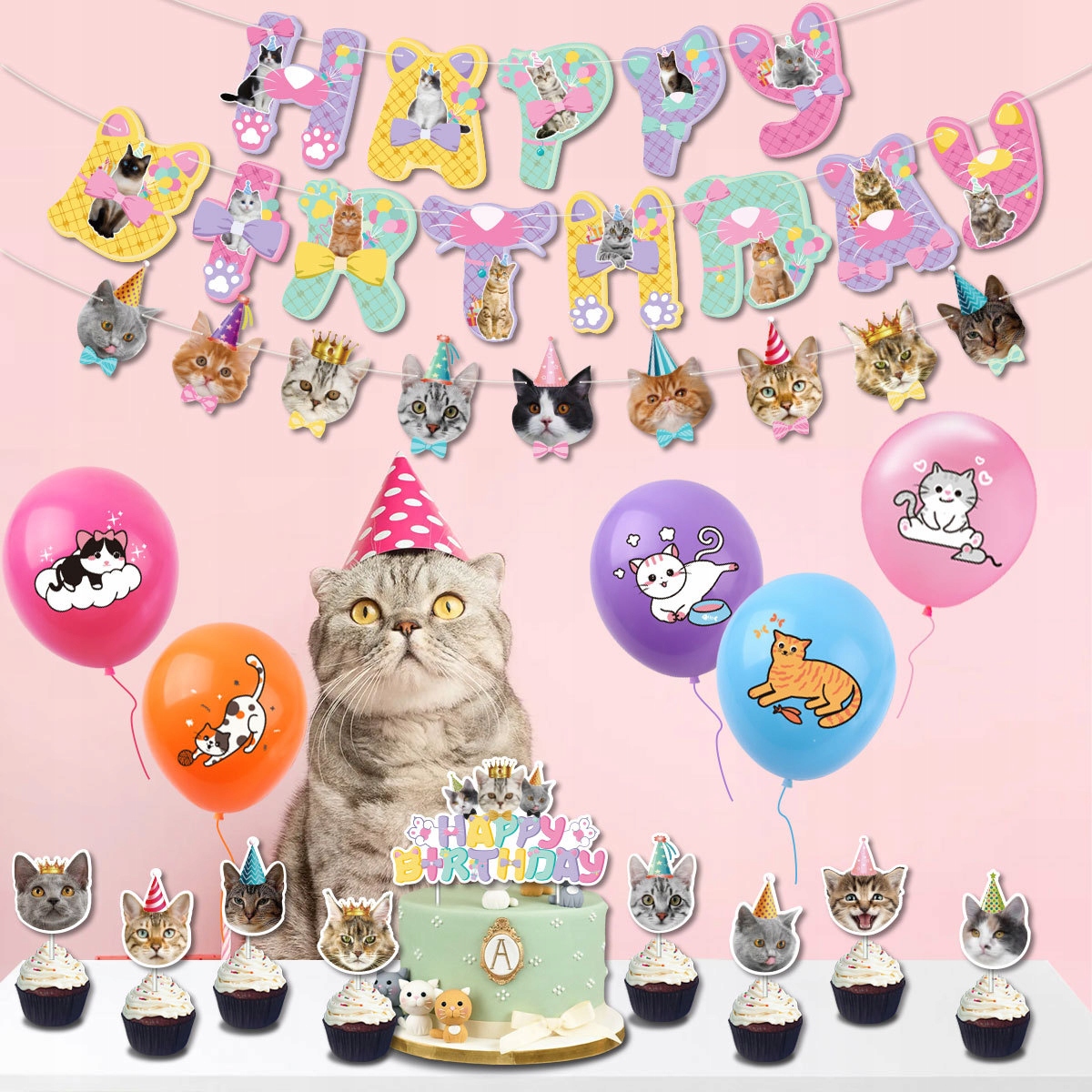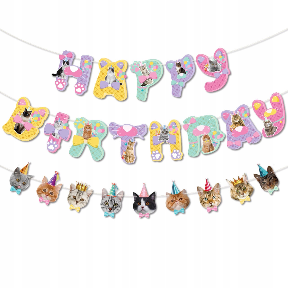 • 1 sztuka girlanda urodzinowa z napisem Happy Birthday – motyw koty