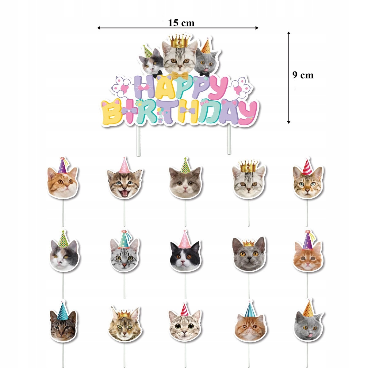 • 15 sztuk topperów na babeczki – Kotki