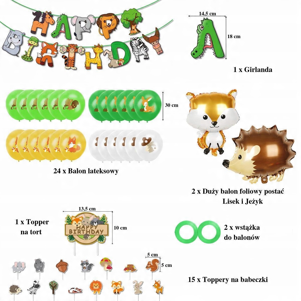 - 1 sztuka girlanda urodzinowa z napisem Happy Birthday – Zwierzaki